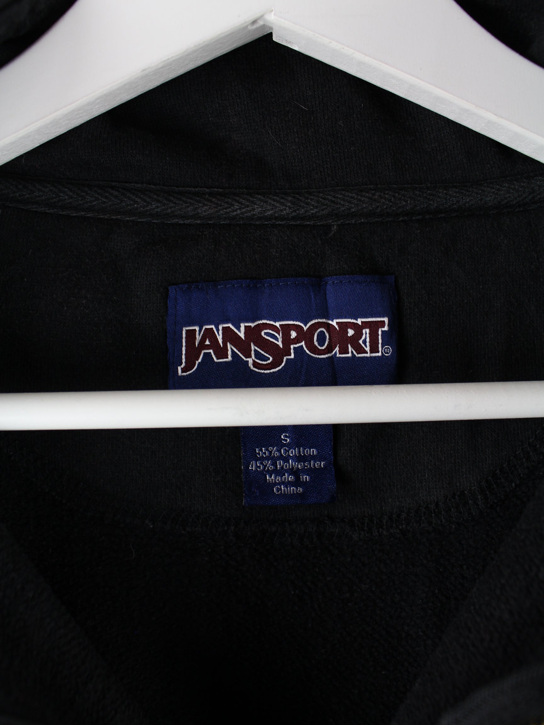 Sweater von Jansport mit gesticktem Logo und halbem Reißverschluß in Größe S aus den 90'ern. Er ist aus einer Baumwollmischung hergestellt und in Schwarz in Stock.
