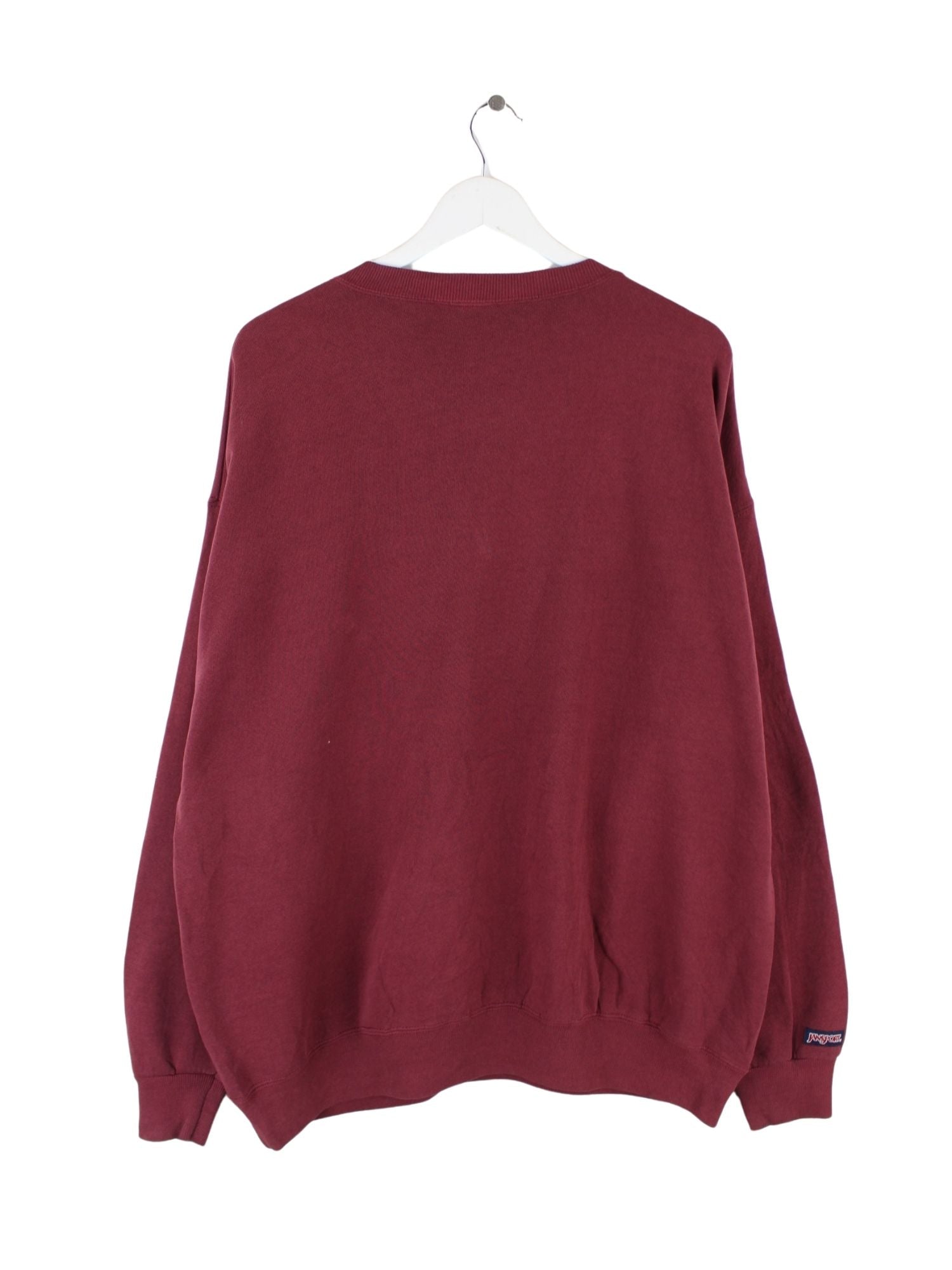 Sweater der Marke Jansport mit gestickten Motiven in Größe XL. Er ist aus einer Baumwollmischung gemacht und in Rot vorrätig.