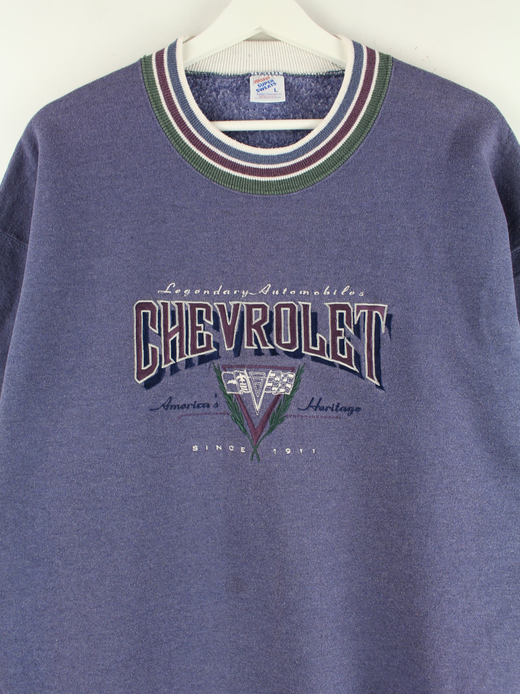 Jerzees 90s Vintage Chevrolet Embroidered Sweater Blau L
