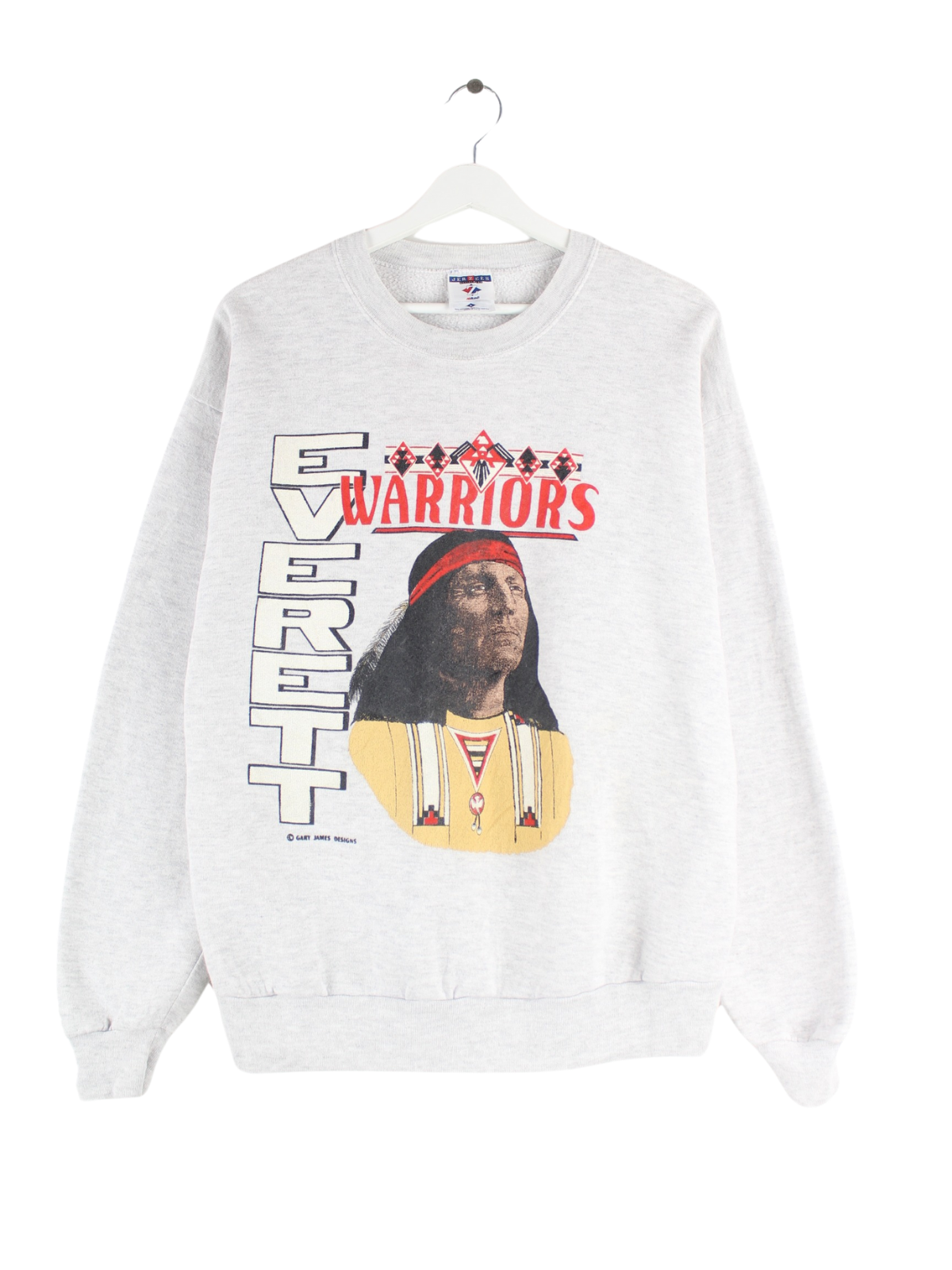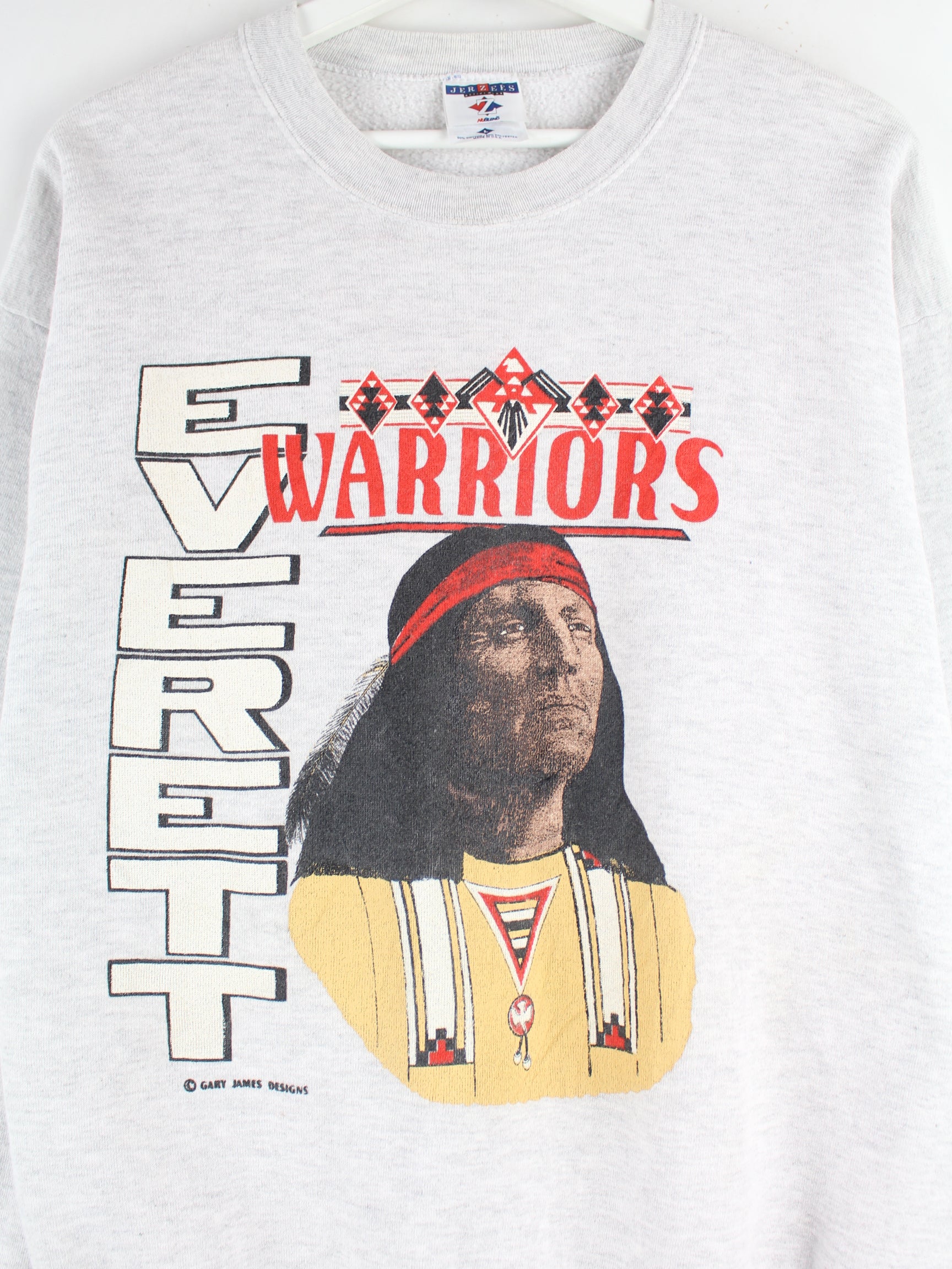 Jerzees 90s Vintage Everett Warriors Print Sweater Gray L