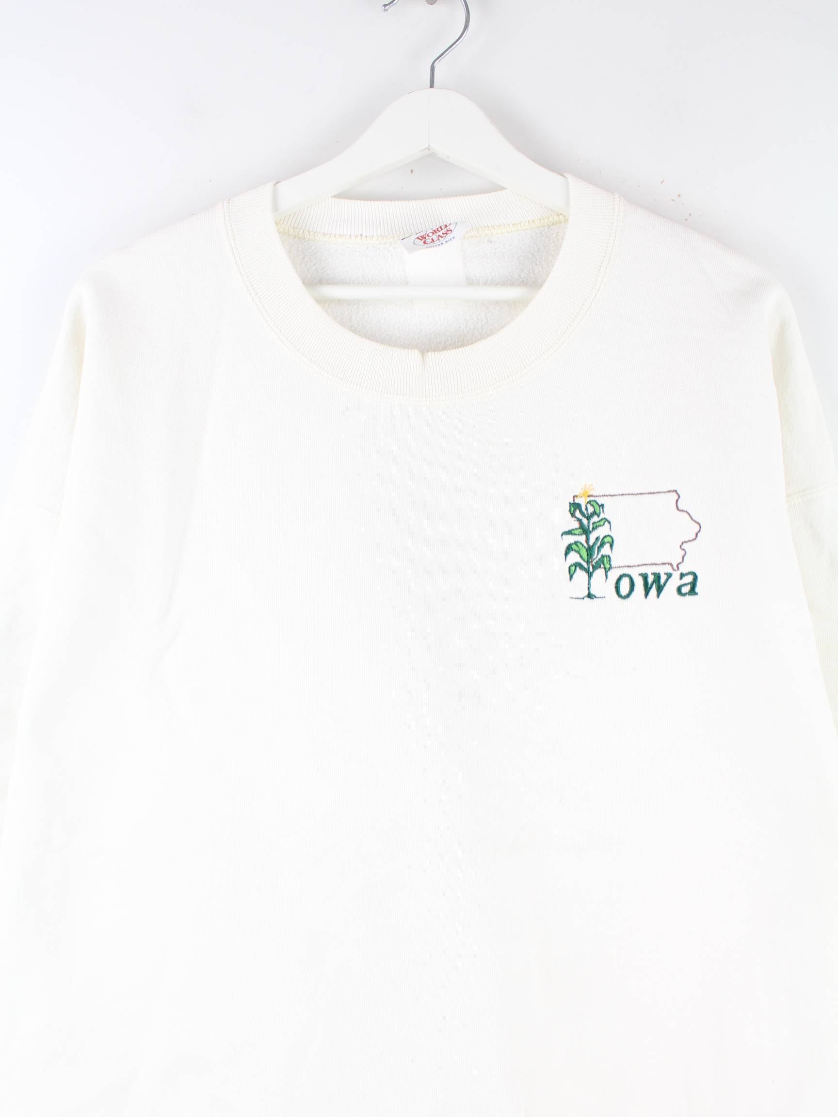 Jerzees 90s Vintage Iowa Embroidered Heavy Sweater Beige XL