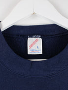 Blauer Sweater aus dem Hause Jerzees aus den 90'ern in Größe L. Er ist aus einer Baumwollmischung gemacht und in gutem Zustand in Stock. Mit schickem Michigan Print.