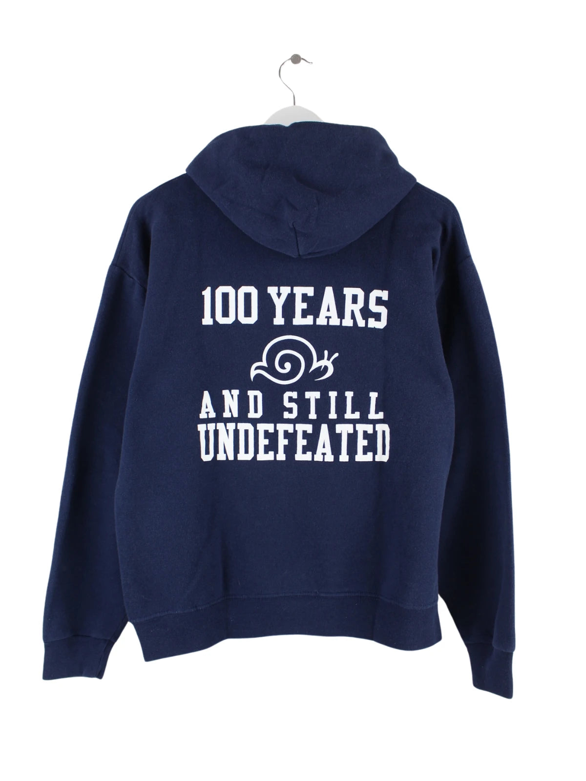 Hoodie von Jerzees in Größe M. Er ist aus einer Baumwollmischung und in Blau im Angebot. Mit schickem Football Print.