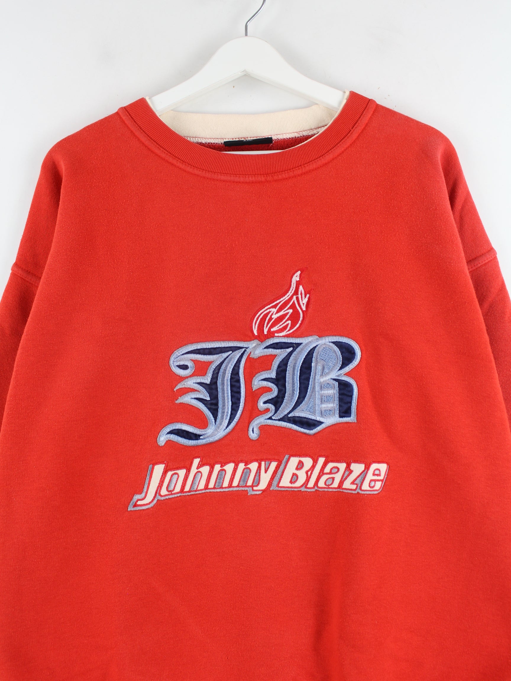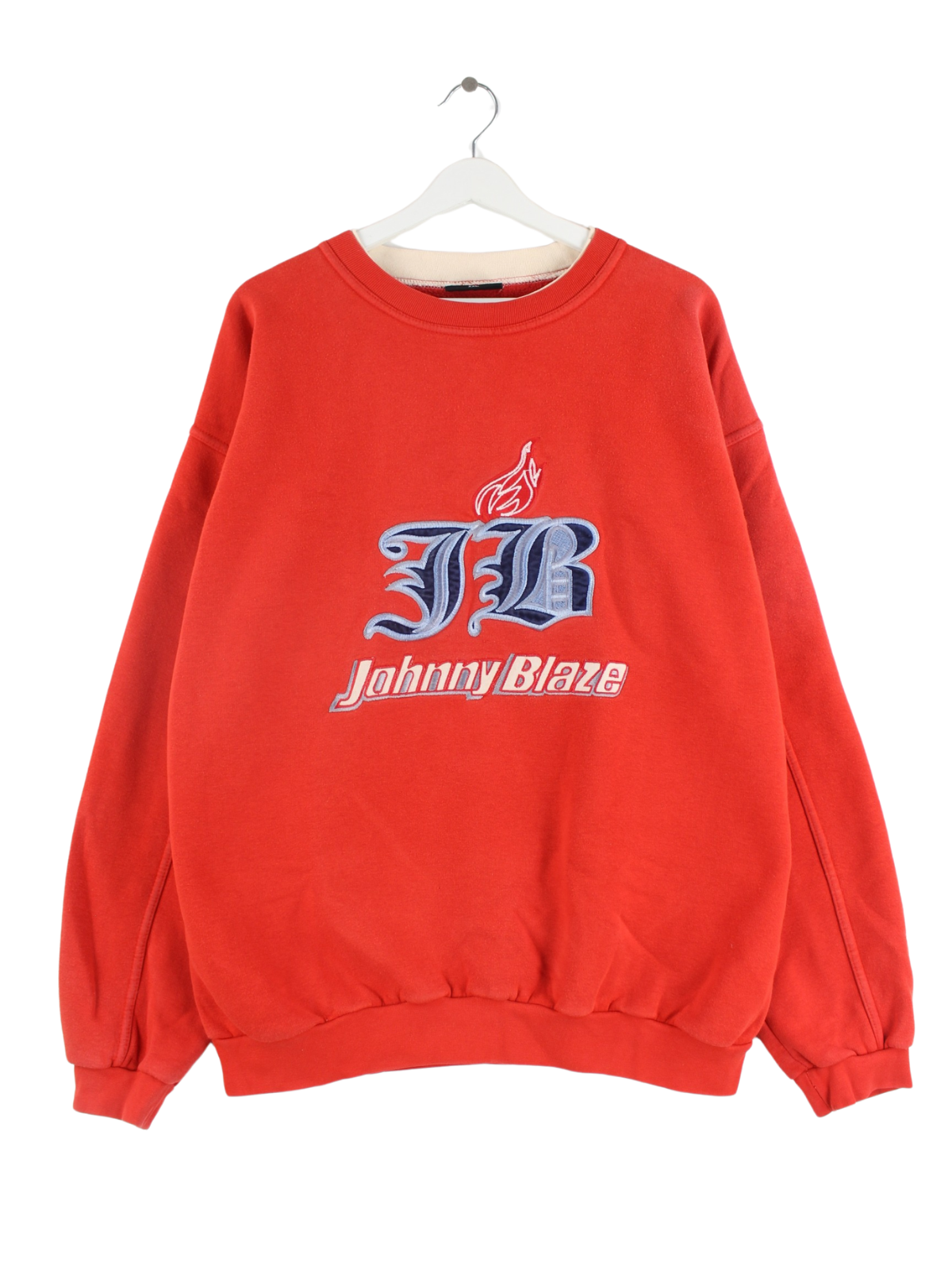 Johnny Blaze 90s Vintage Embroidered Sweater Rot XXL