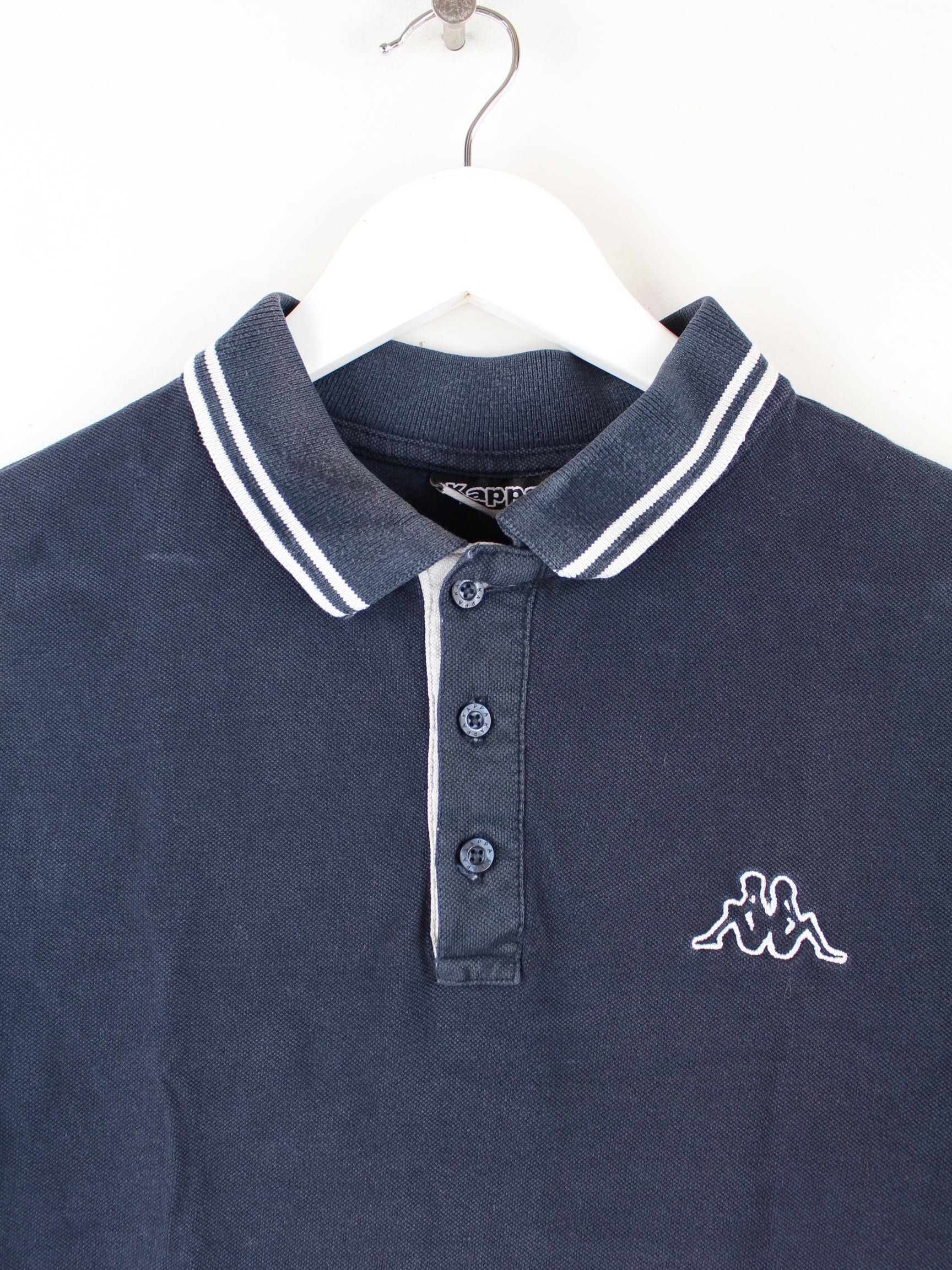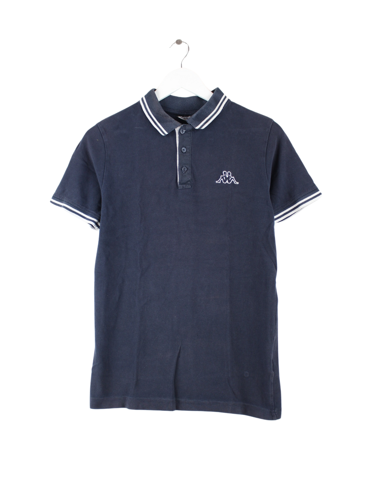 Polo shirt from the brand Kappa with embroidery in size S. It is made of cotton and available in blue.