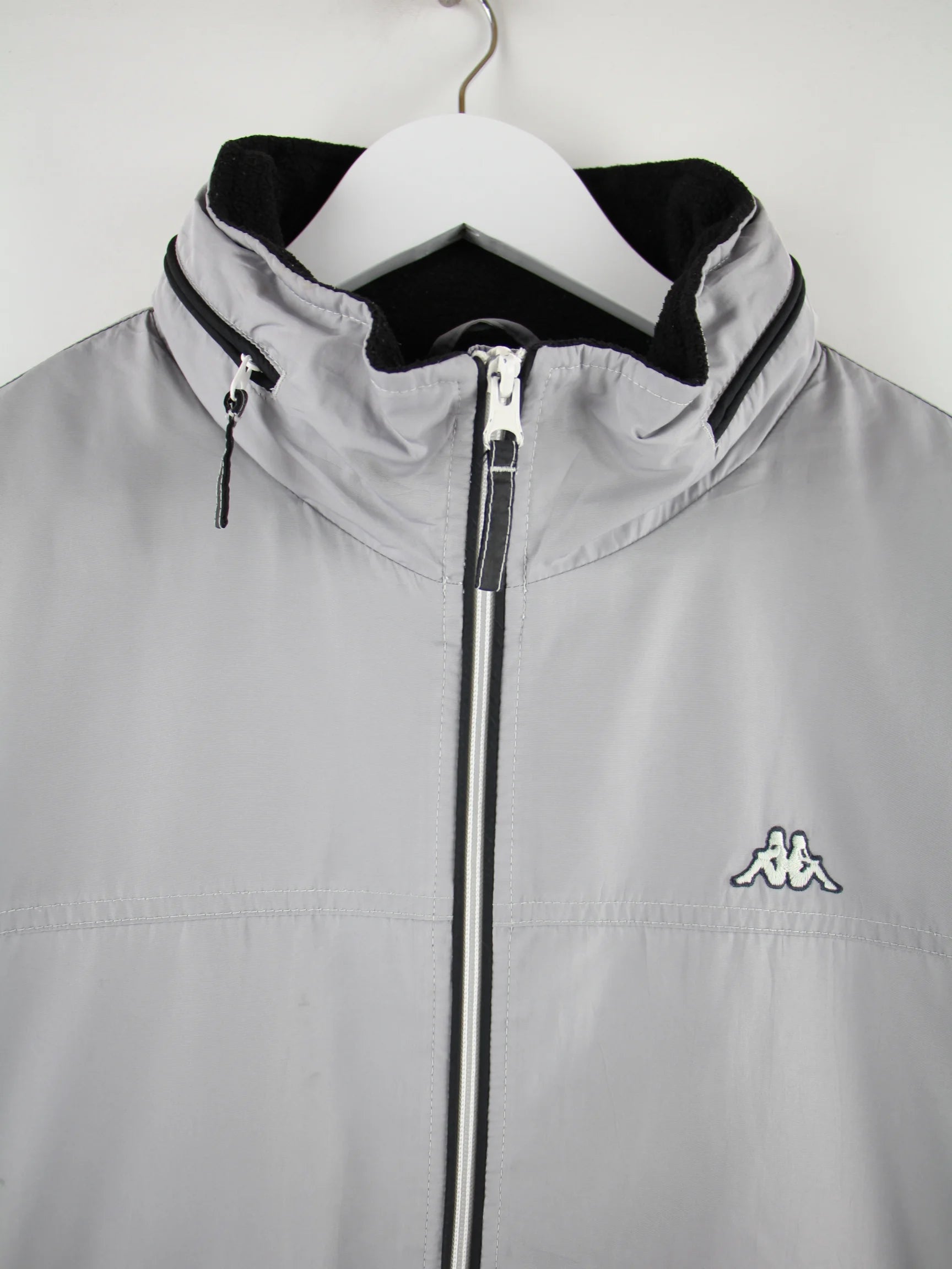 Graue Jacke vom Label Kappa in Größe M. Sie ist aus Synthetik angefertigt und in gutem Zustand bei uns vorrätig.