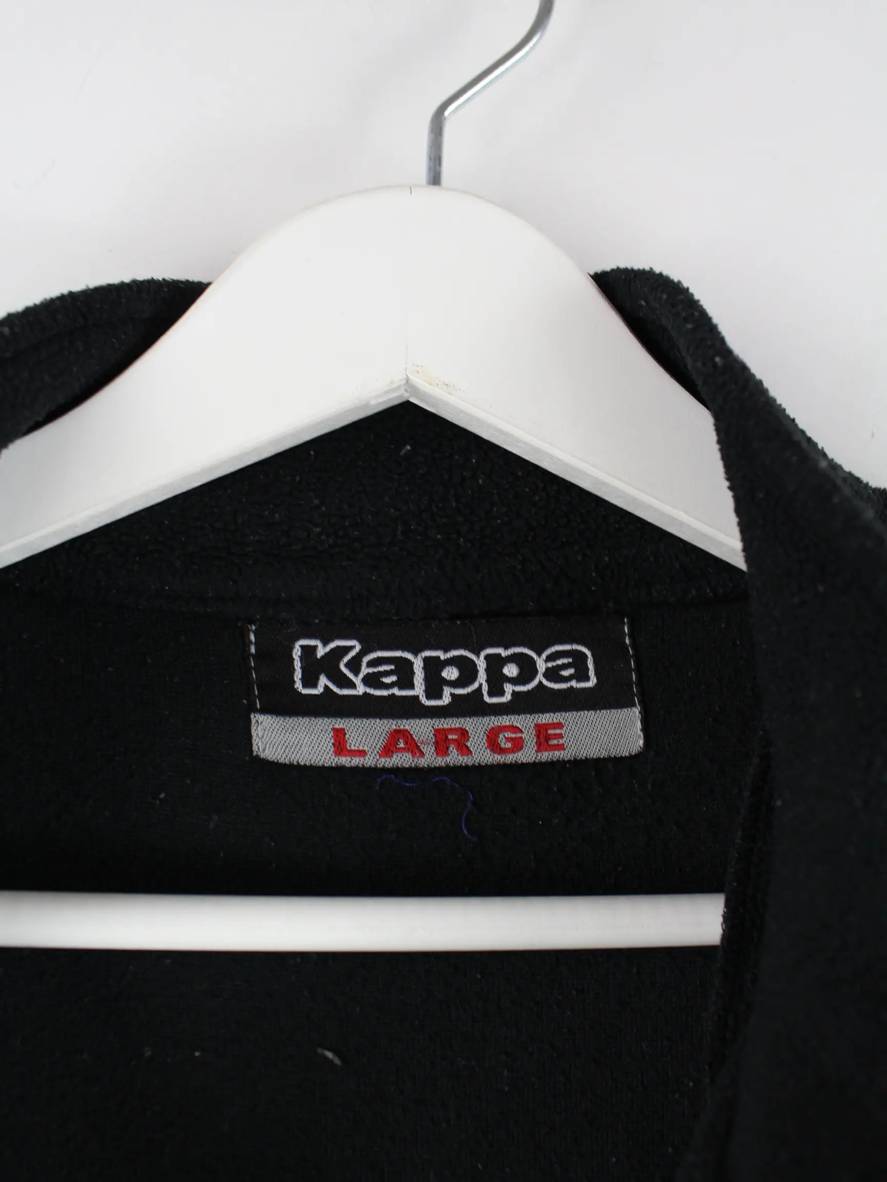 Sweater des Labels Kappa mit kurzem Reißverschluß in Größe L. Er ist aus kuscheligem Fleece gemacht und in Schwarz in Stock.