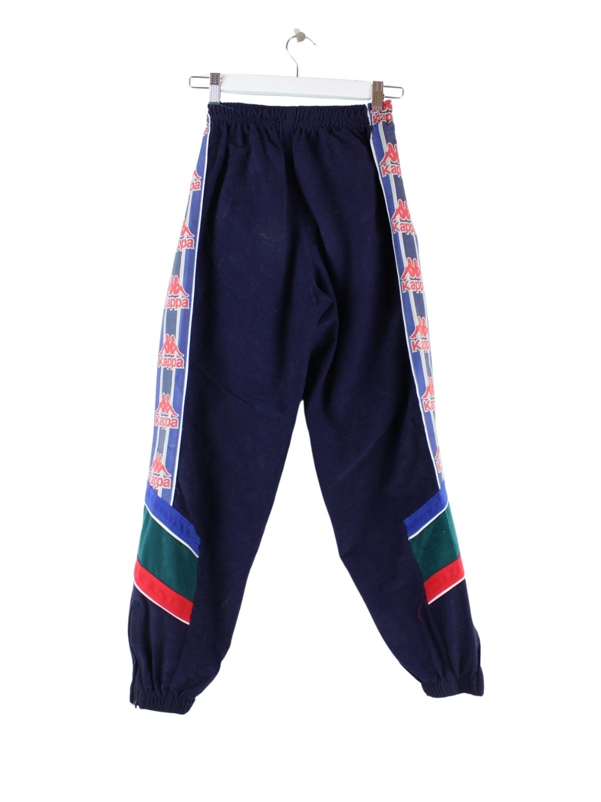 Blaue Jogginghose aus dem Hause Kappa aus den 80'ern in Größe XS. Sie ist aus einer Baumwollmischung produziert. Den Zustand würden wir als 'In Ordnung' bezeichnen (vergl. Bilder).