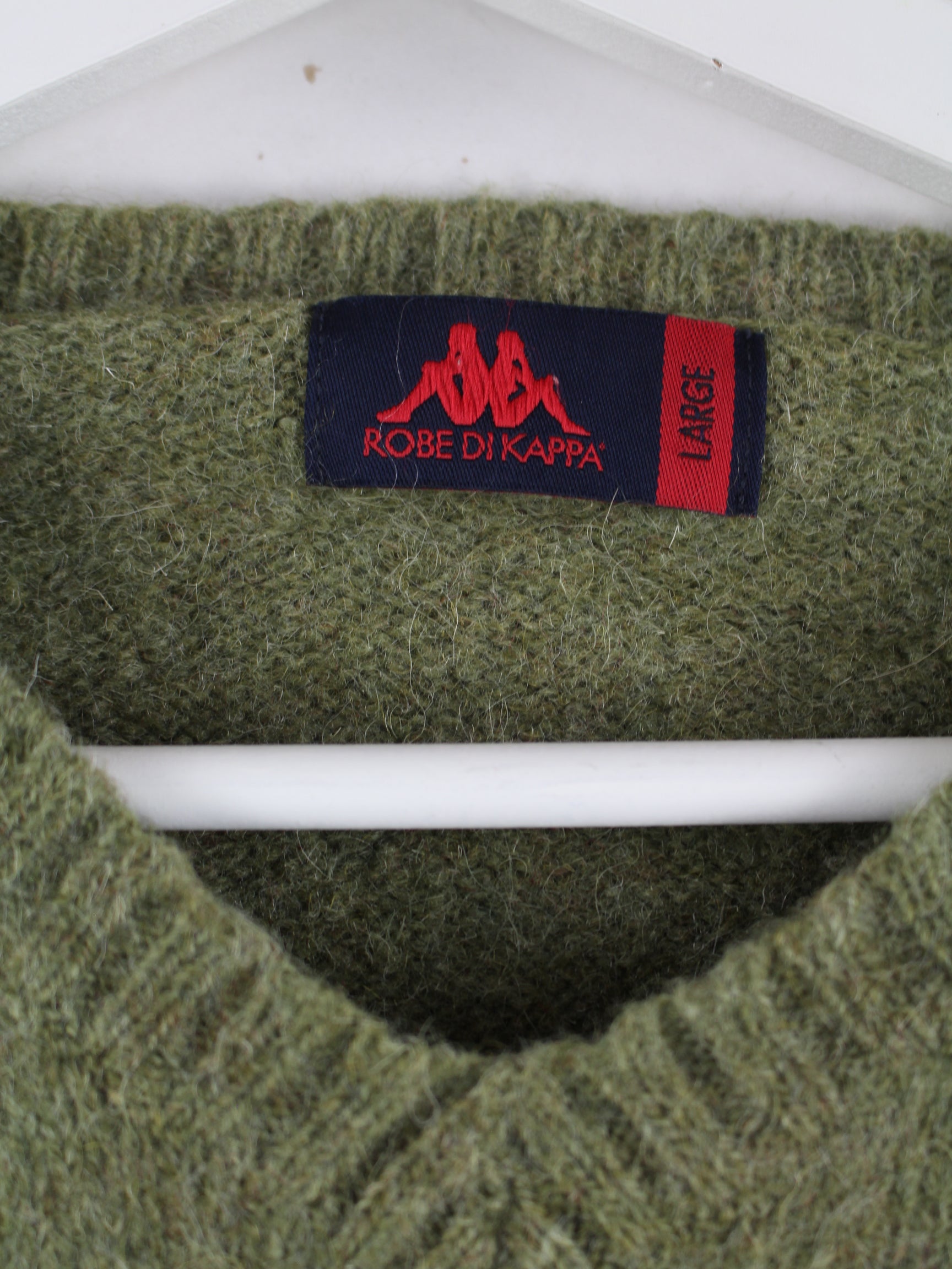 Pullover vom Label Kappa in Größe M aus den 90'ern. Er ist aus Wolle angefertigt und in Grün zu bekommen.