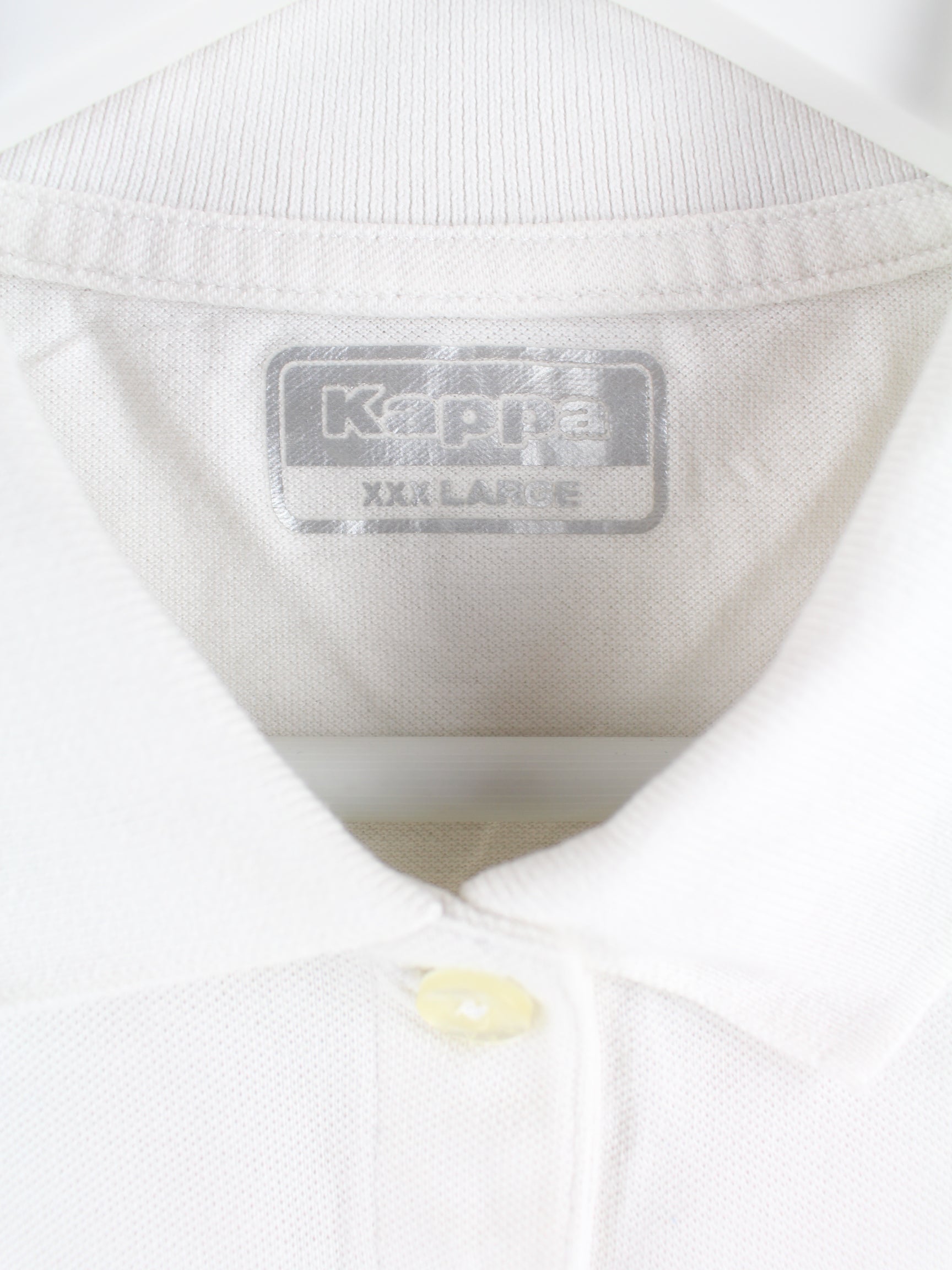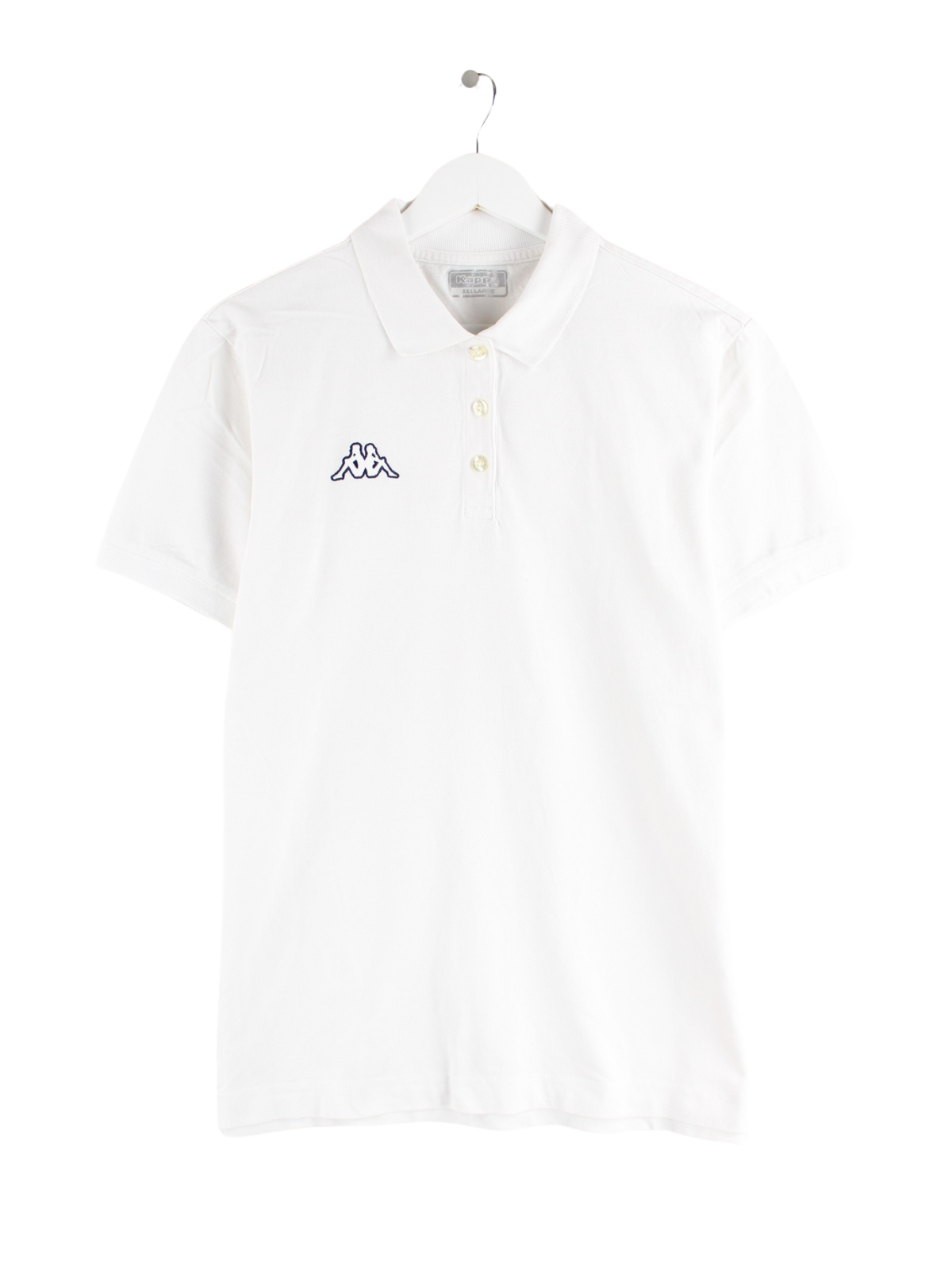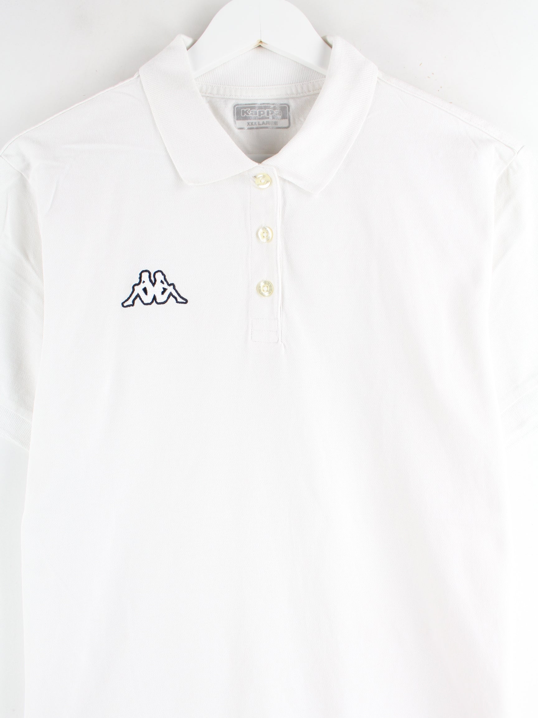 Poloshirt der Brand Kappa mit Stickereien in Größe M. Es ist aus Baumwolle produziert und in Weiß zu haben.