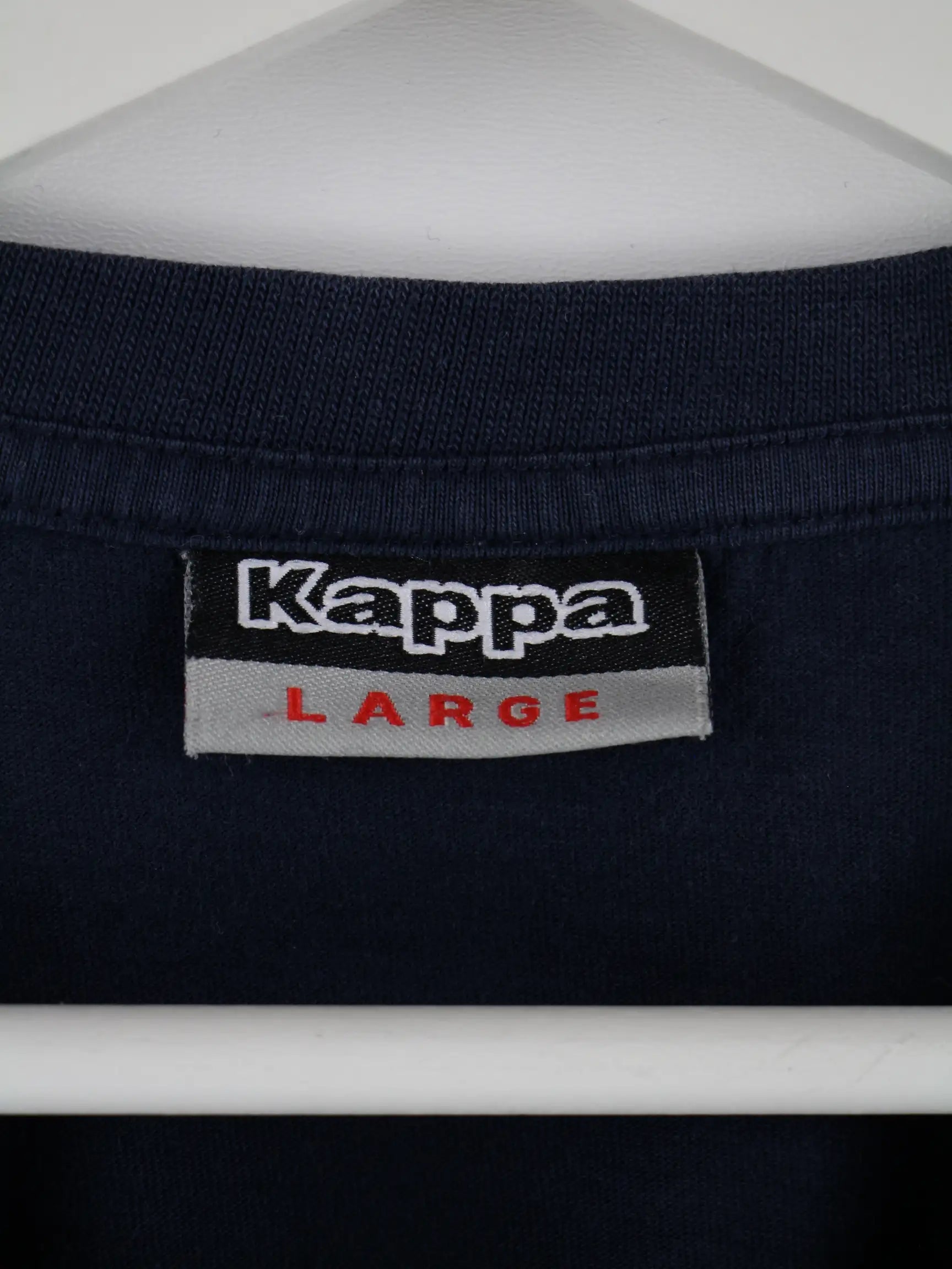 T-Shirt der Marke Kappa in Größe L. Es ist aus Baumwolle hergestellt und in Blau im Angebot.