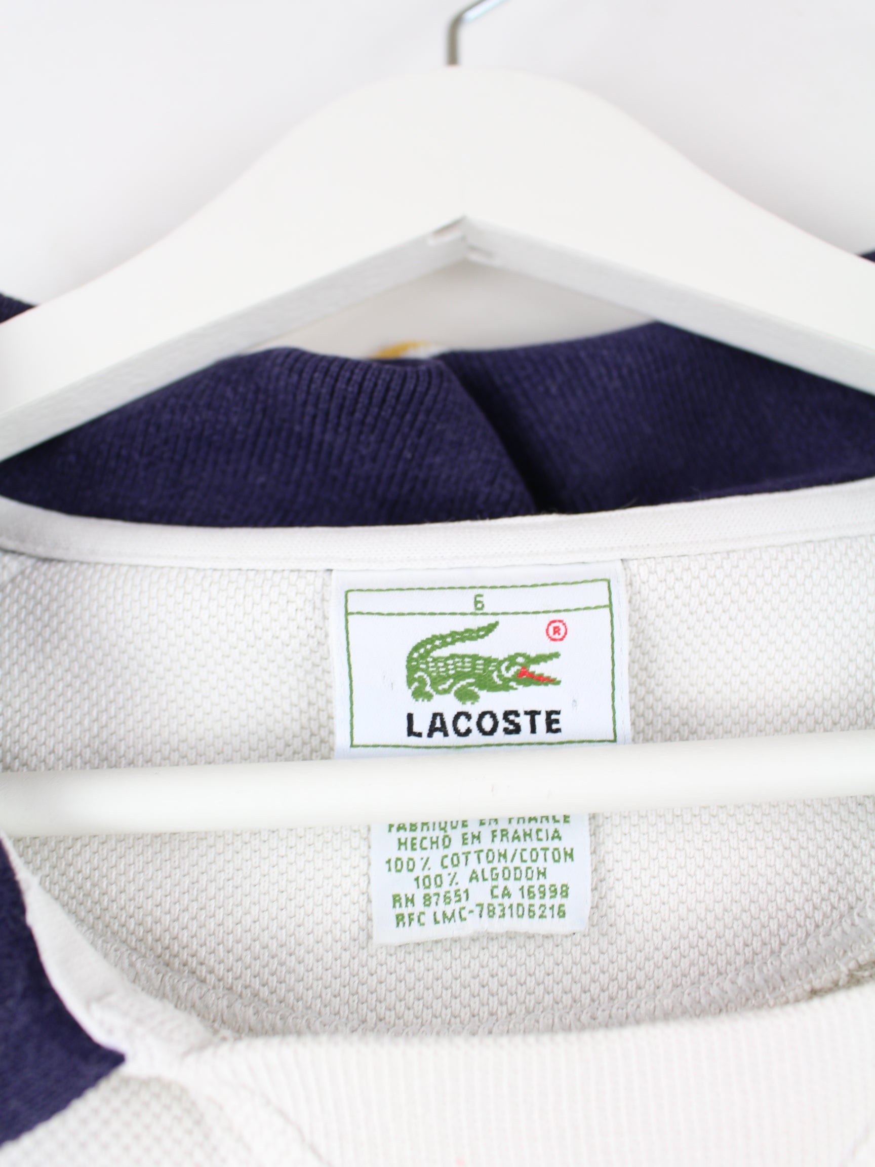 Sweater from the label Lacoste in size L. It is made of a cotton blend and is in stock in white.