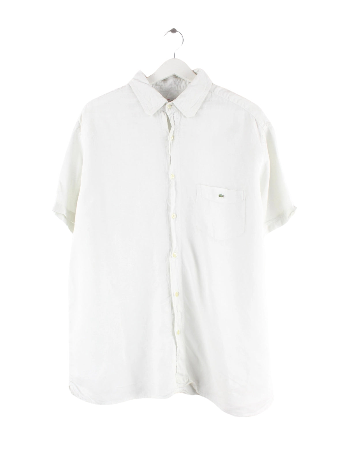 Weißes Freizeit Hemd der Brand Lacoste in Größe XL. Es ist aus Leinen und in sehr gutem Zustand auf Lager.