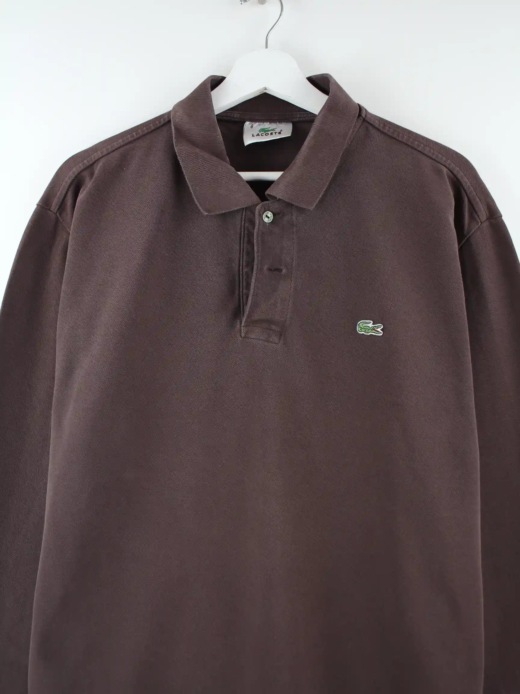 Poloshirt der Brand Lacoste in Größe L aus den 90'ern. Es ist aus Baumwolle gefertigt und in Braun vorrätig.