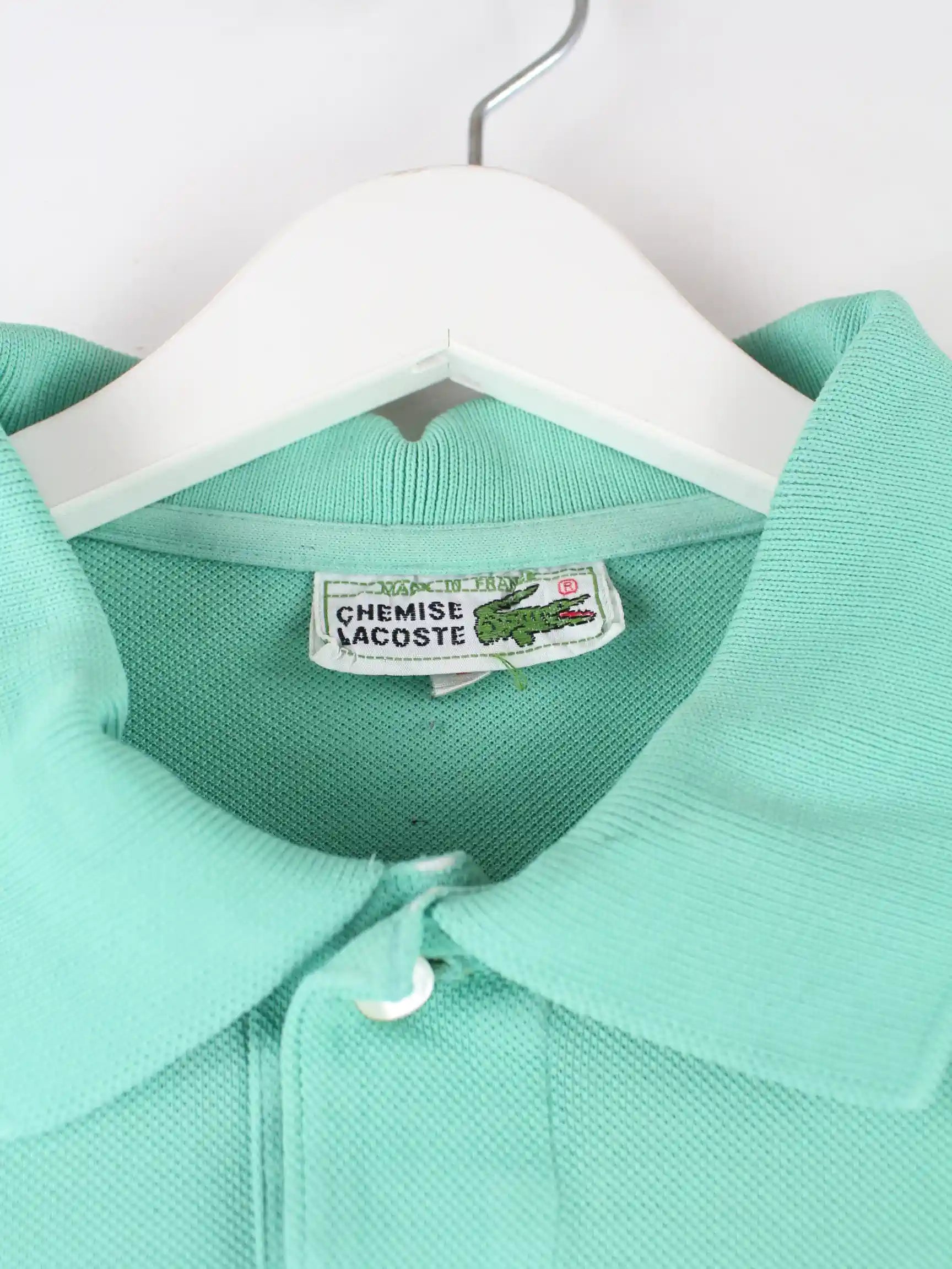 Grünes Poloshirt vom Label Lacoste aus den 90'ern in Größe L. Es ist aus Baumwolle hergestellt und in gutem Zustand auf Lager.
