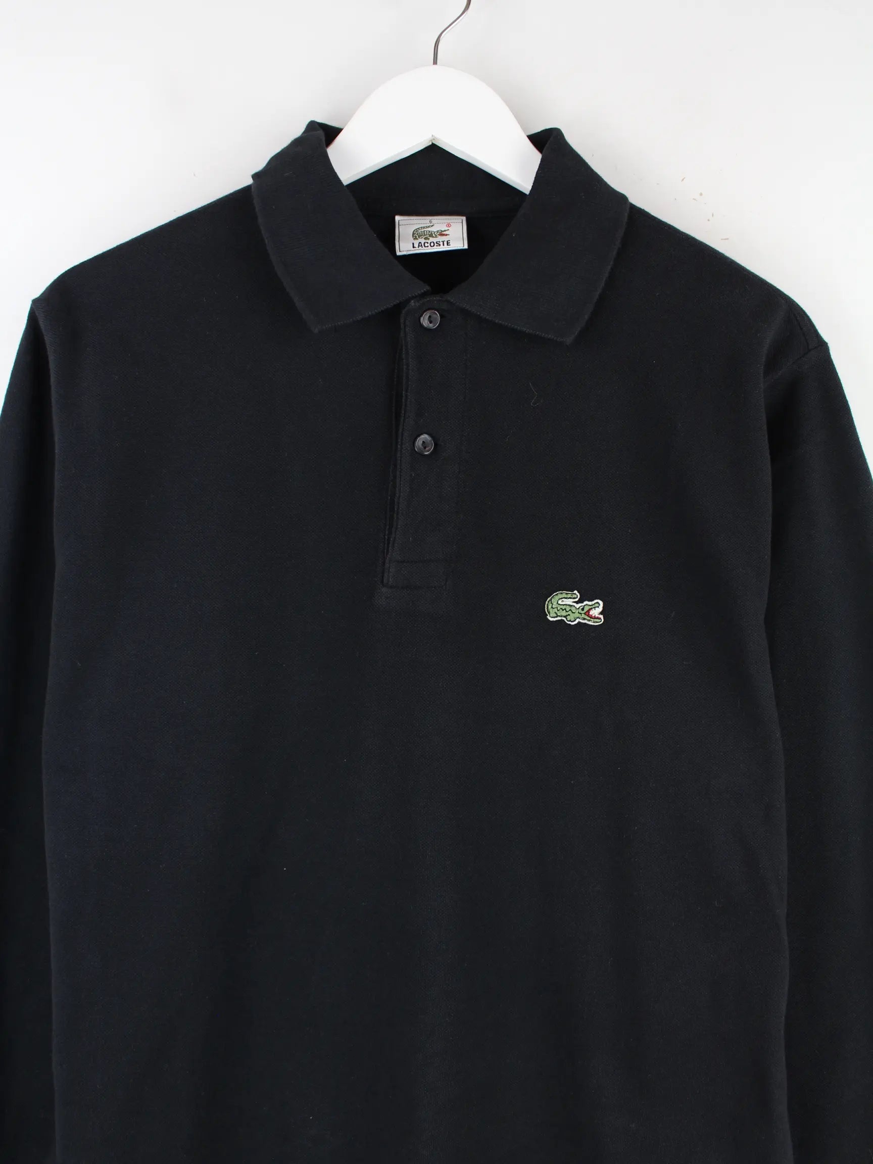 Lacoste 90s Vintage Rugby Langarm Polo Schwarz L