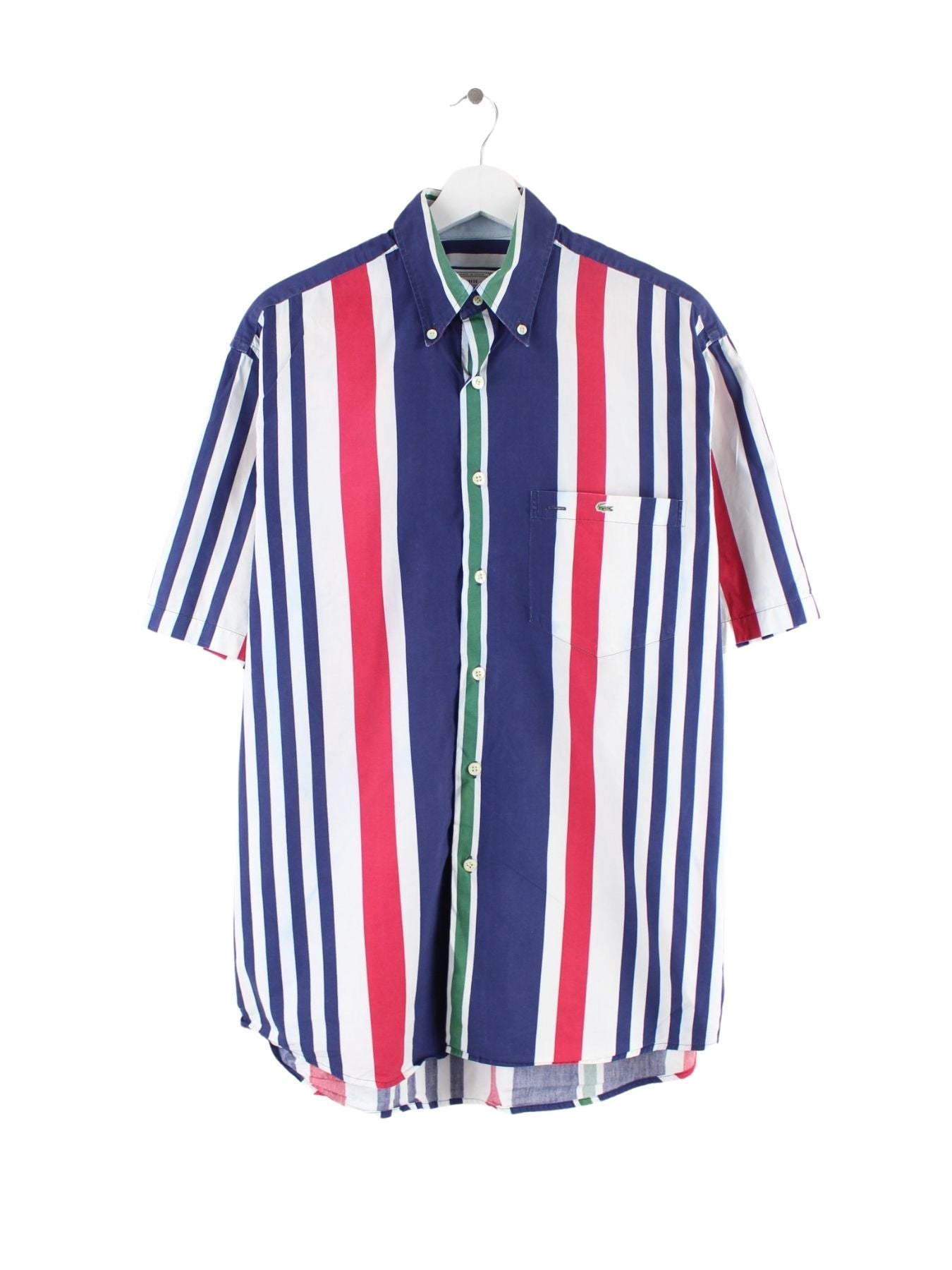 Lacoste 90s Vintage Striped Kurzarm Hemd Blau M