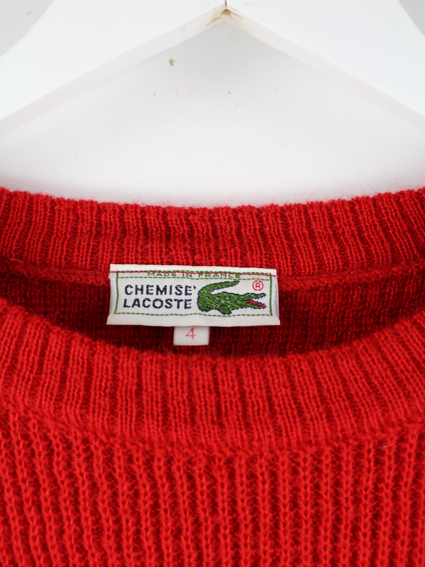 Roter Pullover von Lacoste aus den 90'ern in Größe S. Er ist aus Baumwolle gemacht und in gutem Zustand im Angebot.