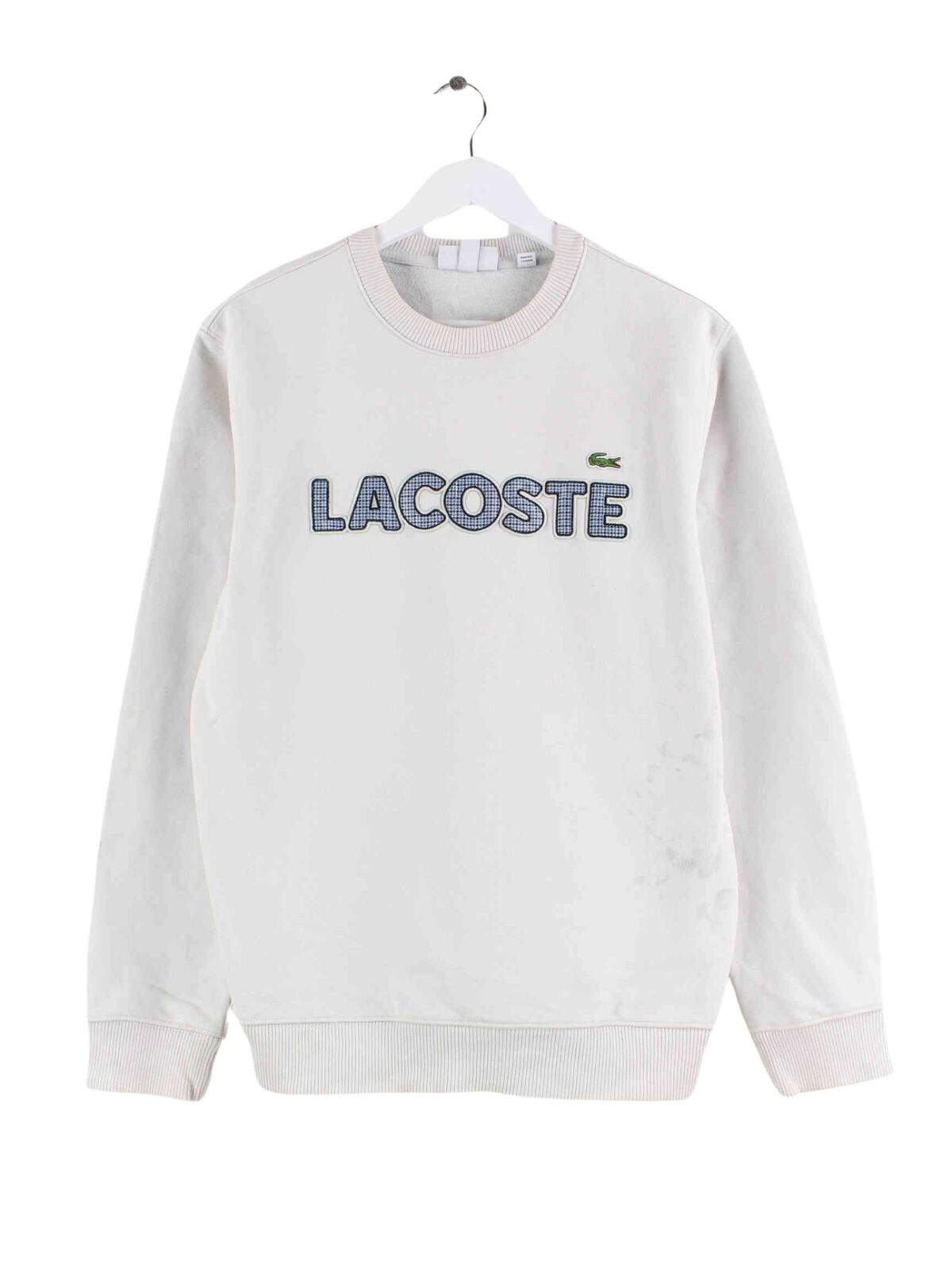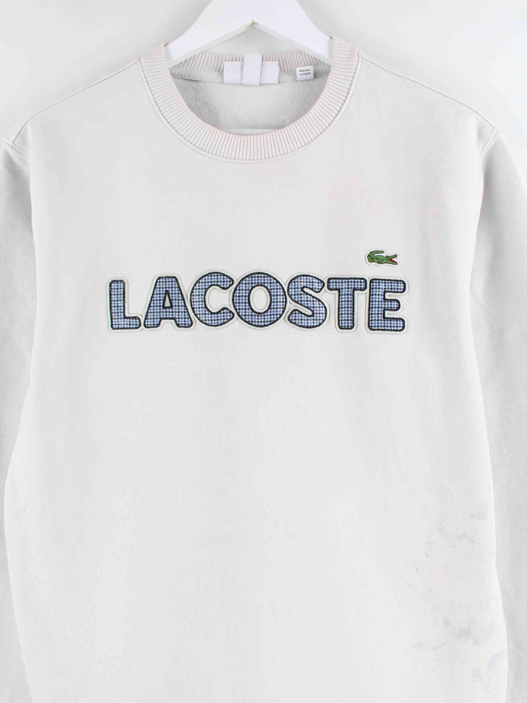 Sweater from the Lacoste brand with embroidered motifs in size M. It is made from a cotton blend and is available in white.
