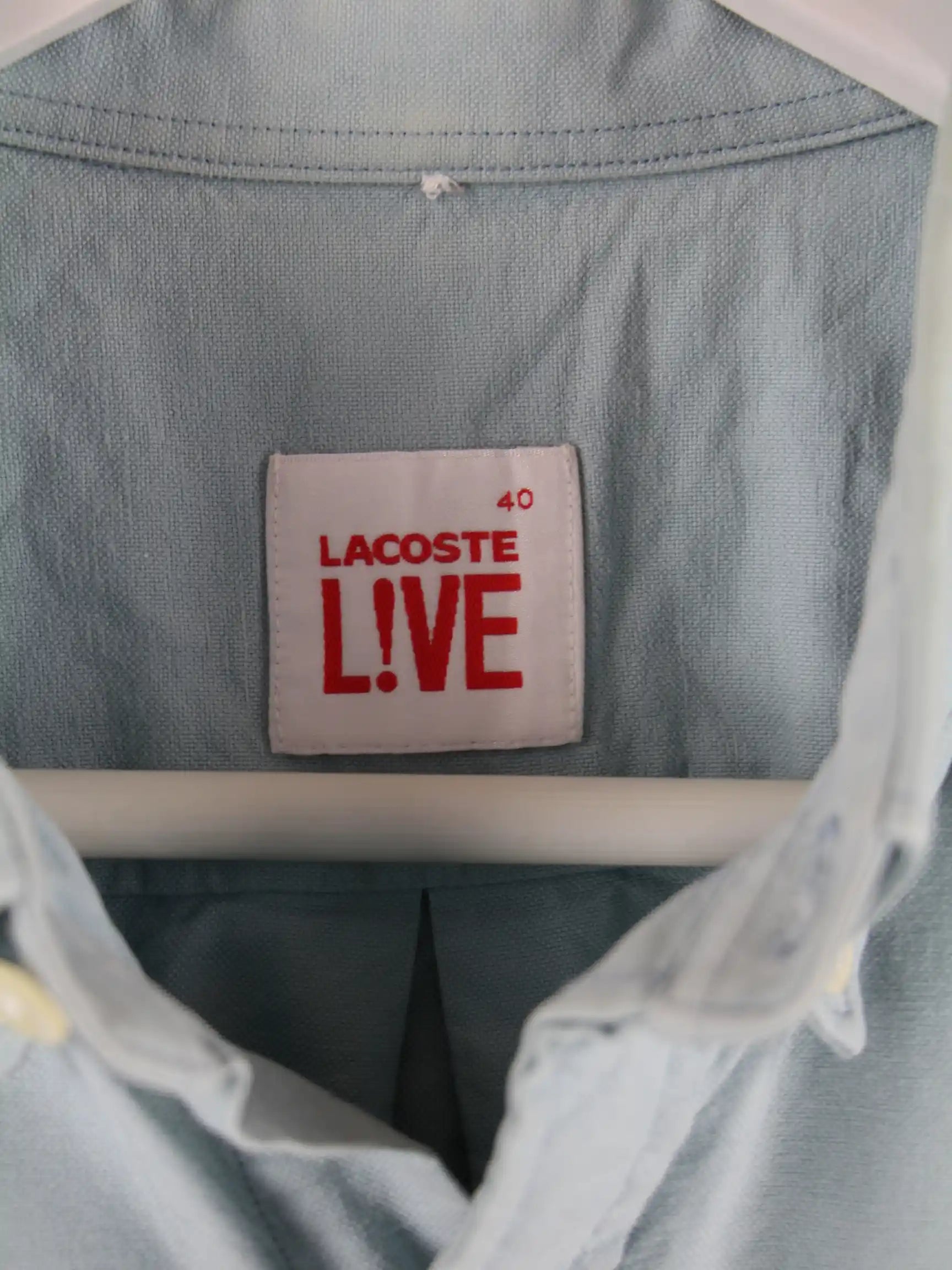 Blaues Hemd von Lacoste in Größe M. Es ist aus Baumwolle gefertigt und in gutem Zustand auf Lager.