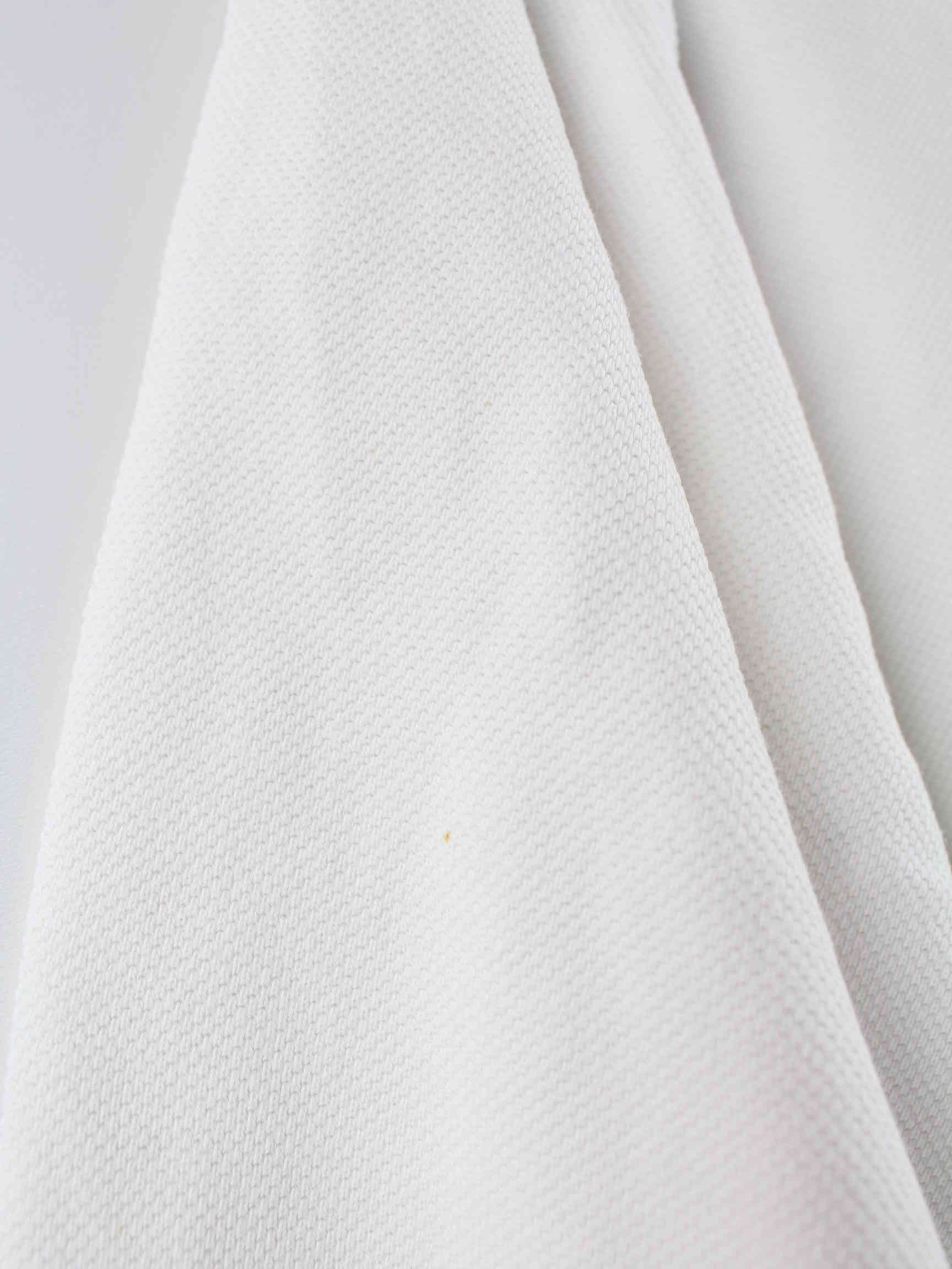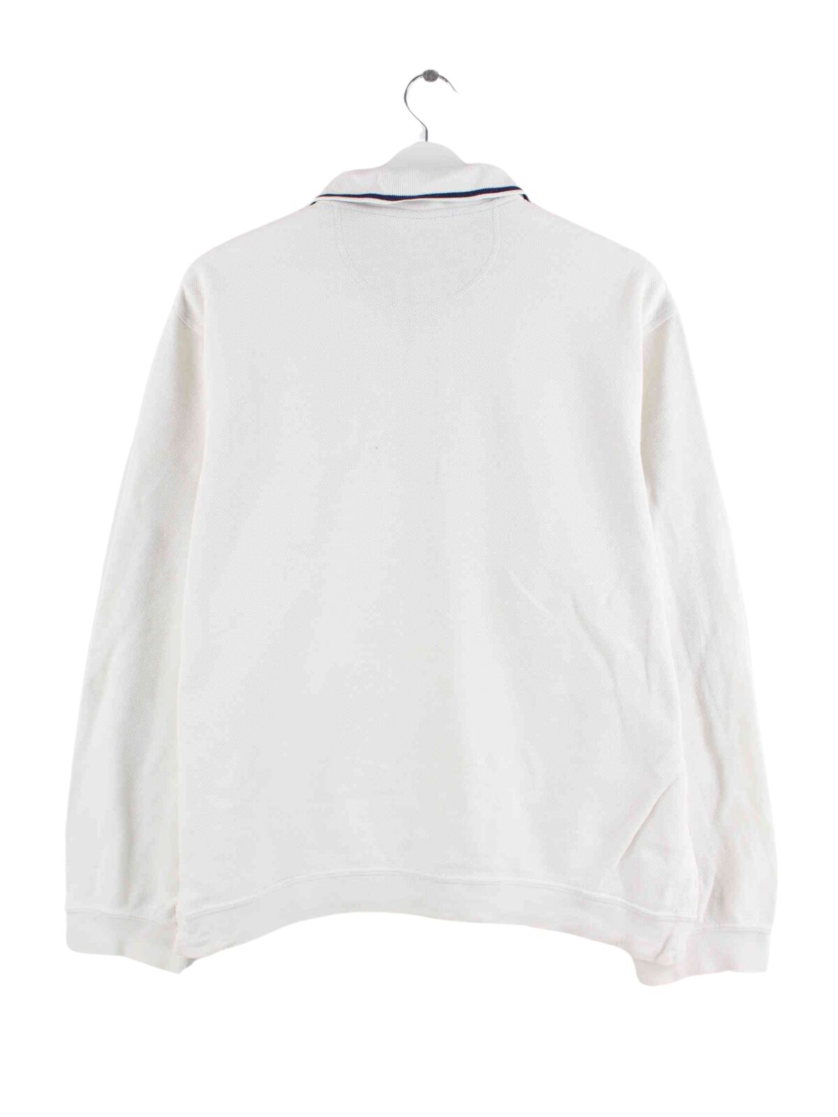 Sweater from the Lacoste label in size M. It is made from a cotton blend and is available in white.