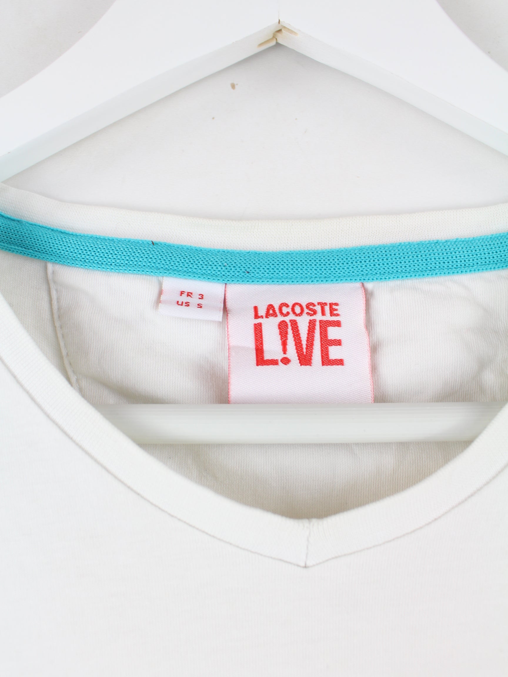 White T-shirt from Lacoste in size XS. It is made of cotton and in very good condition in stock.