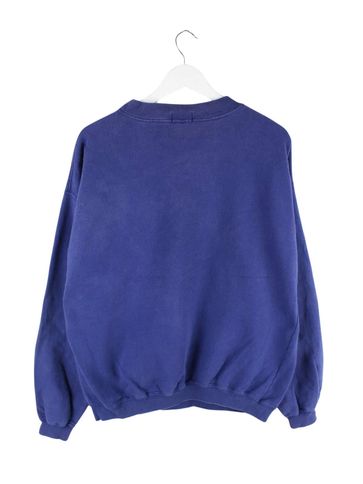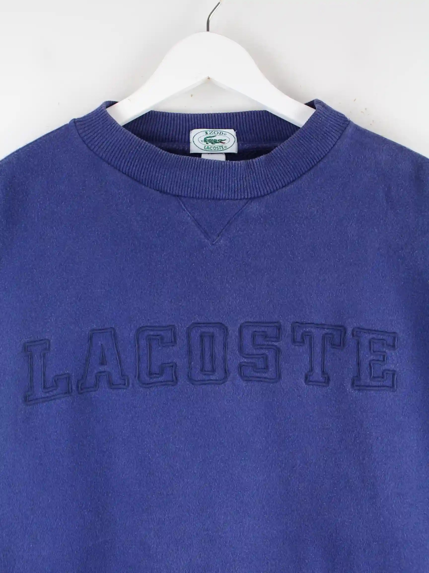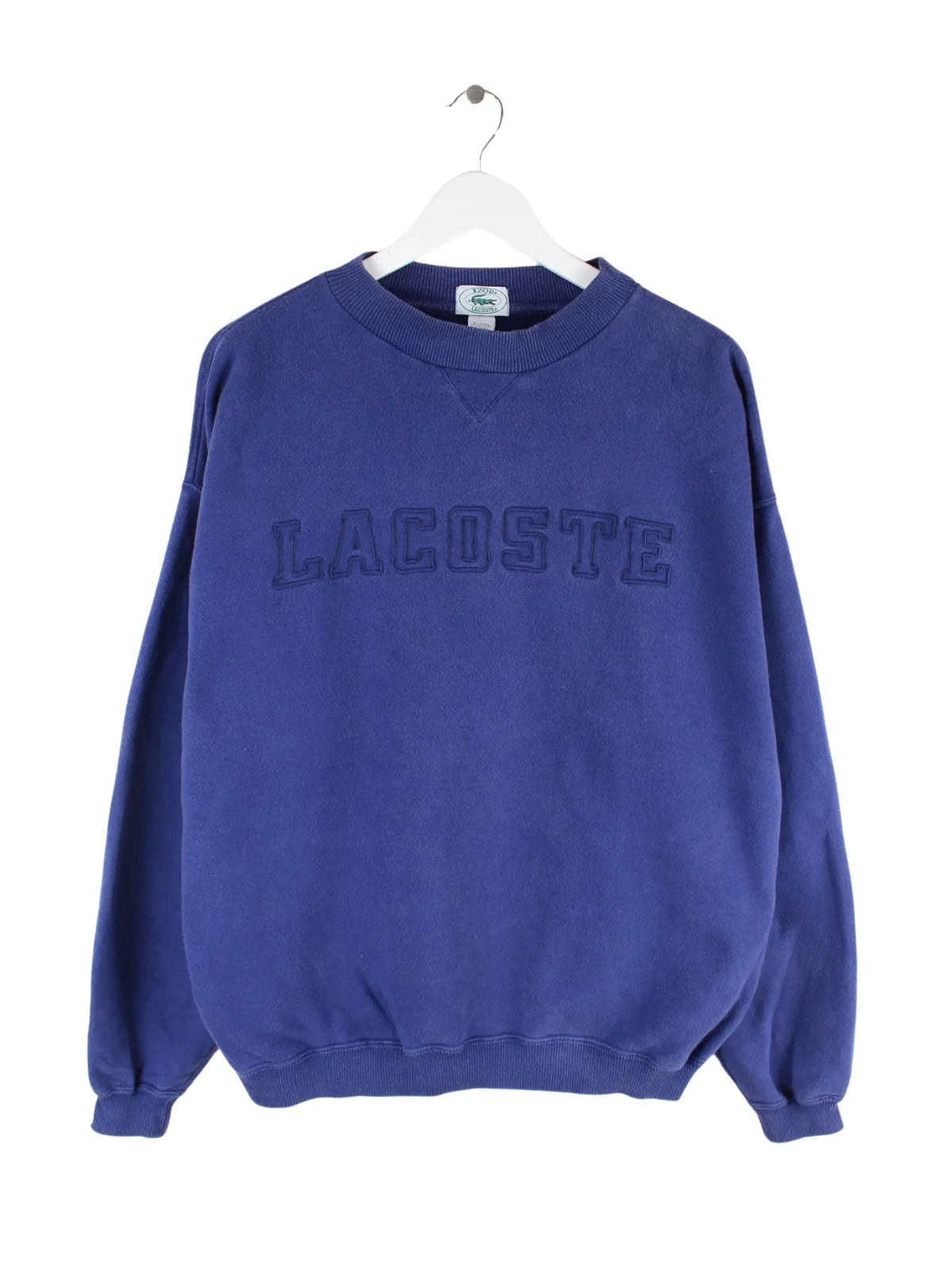 Sweater vom Brand Lacoste in Größe L aus den 90'ern. Er ist aus einer Baumwollmischung und in Blau im Bestand.