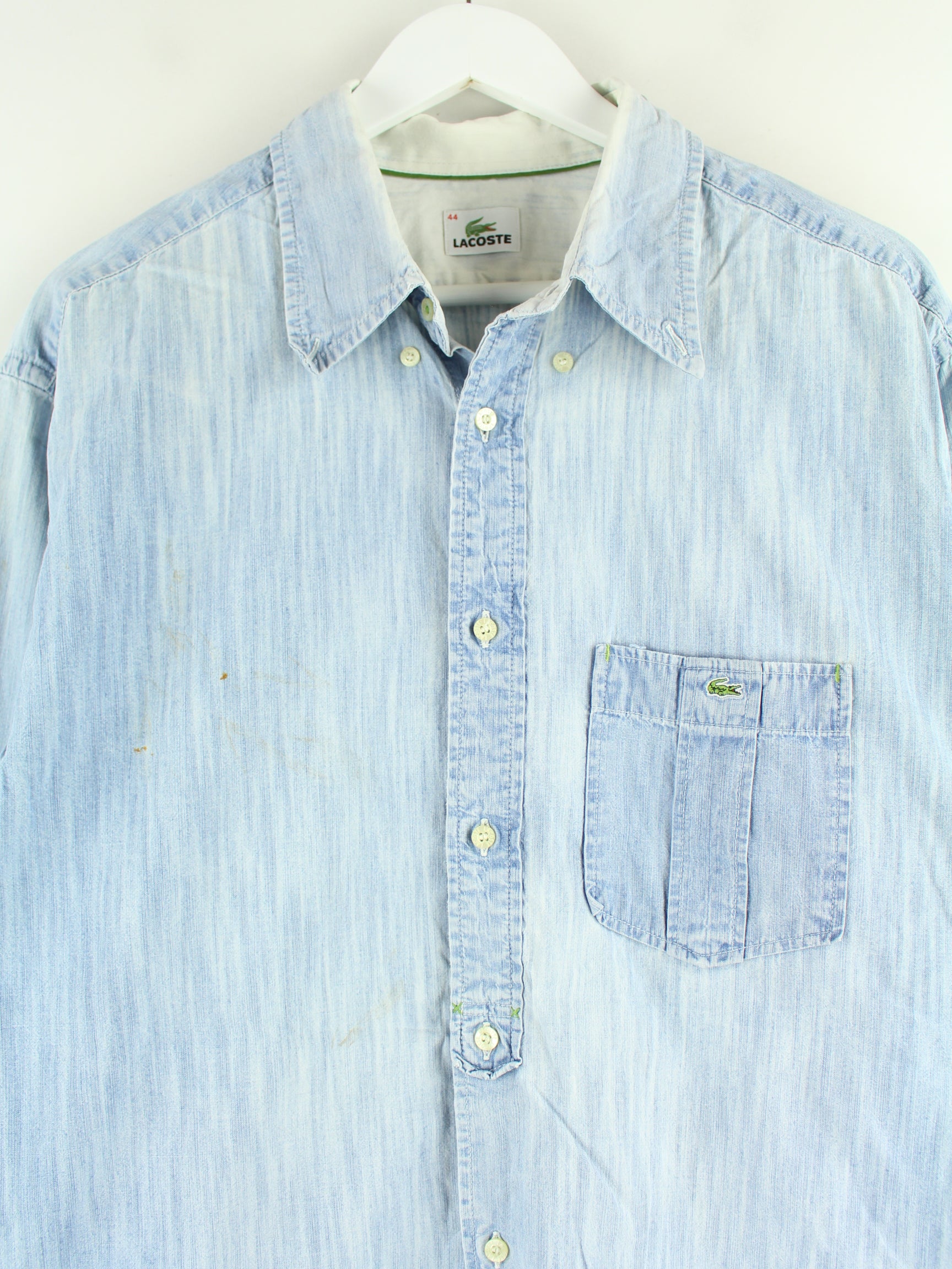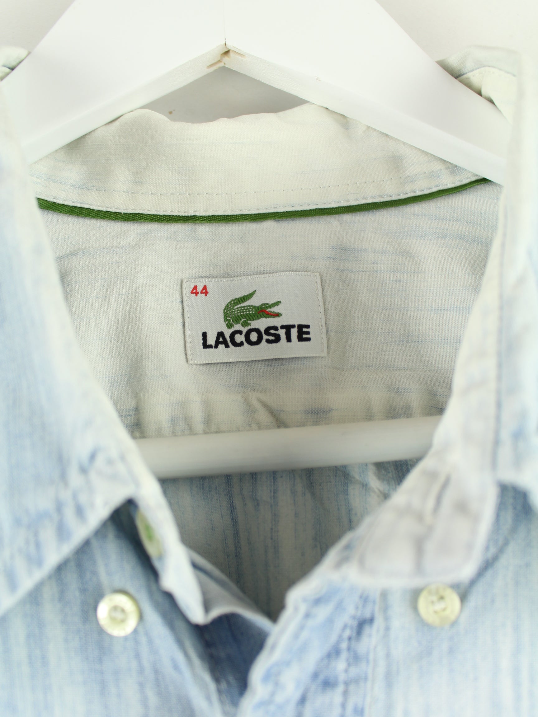 Blue leisure shirt by the brand Lacoste from the early 2000s in size XL. It is made from a cotton blend. We would describe the condition as 'fine' (see pictures).