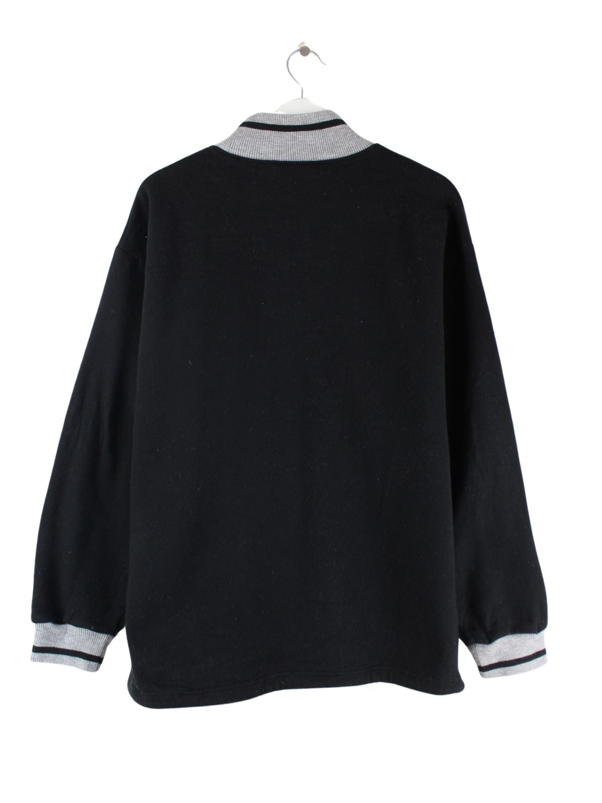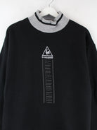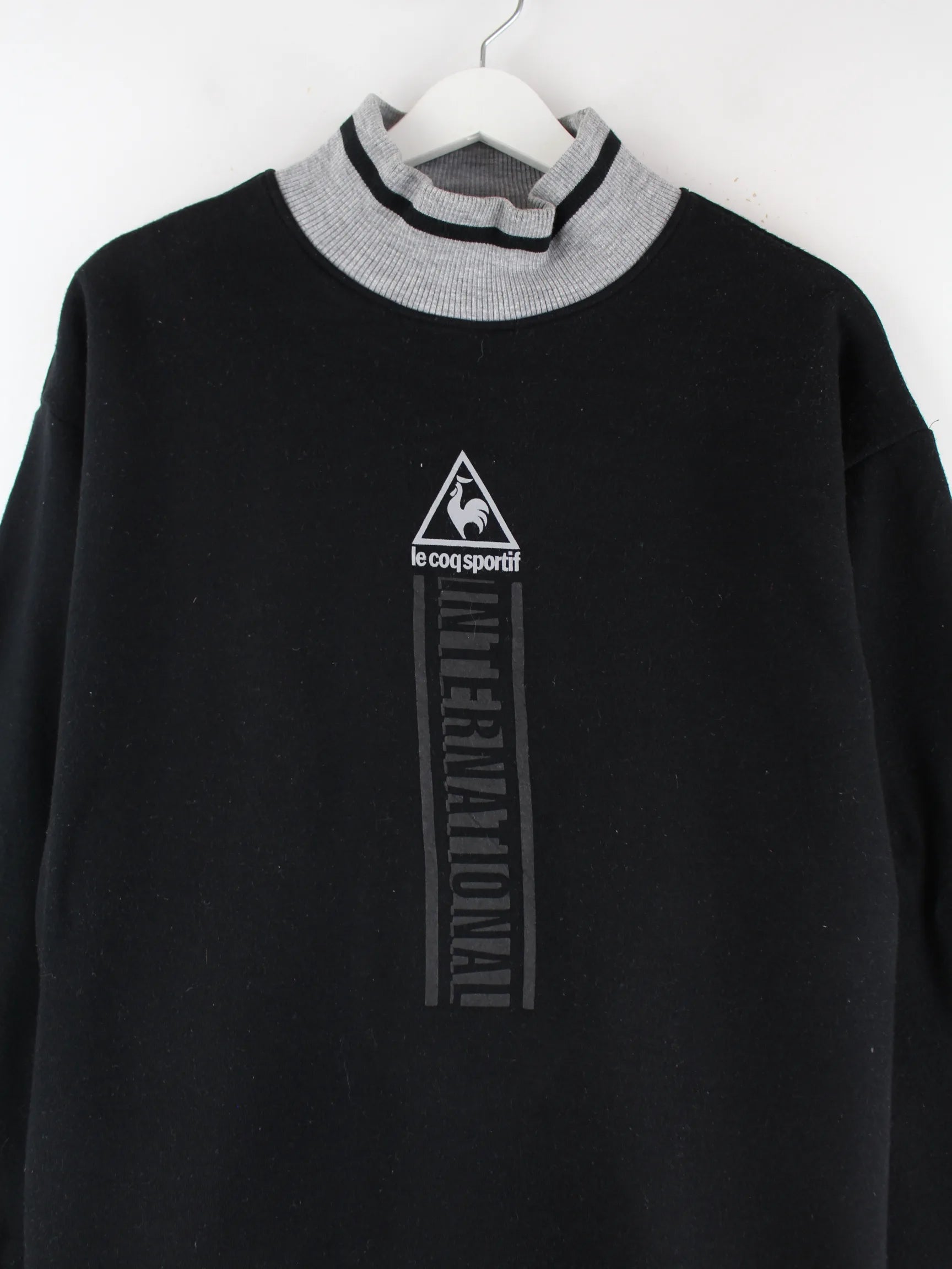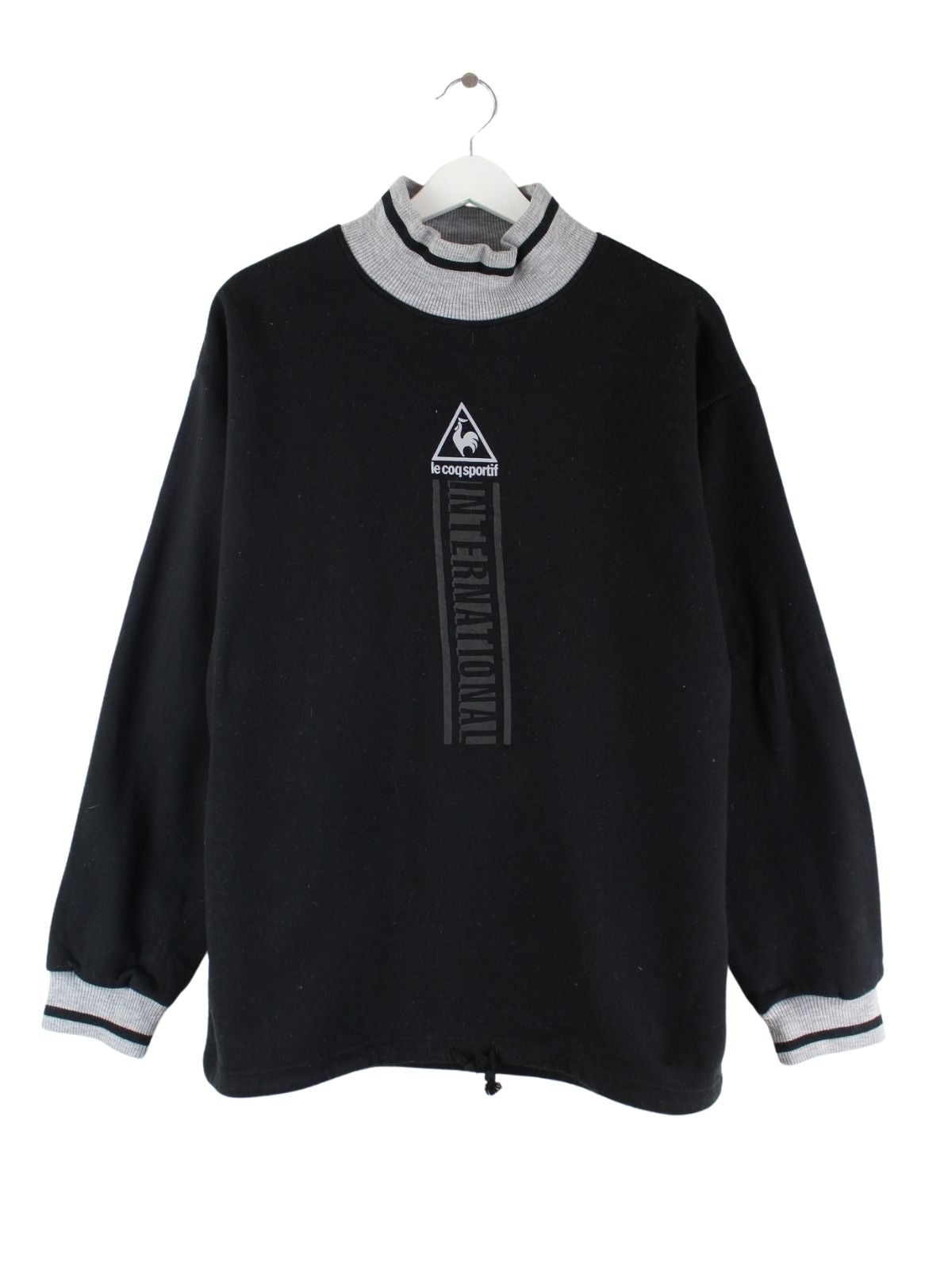 Schwarzer Sweater vom Label Le Coq Sportif in Größe L. Er ist aus einer Baumwollmischung gemacht und in gutem Zustand bei uns vorrätig. Mit chiquem 00s Print.