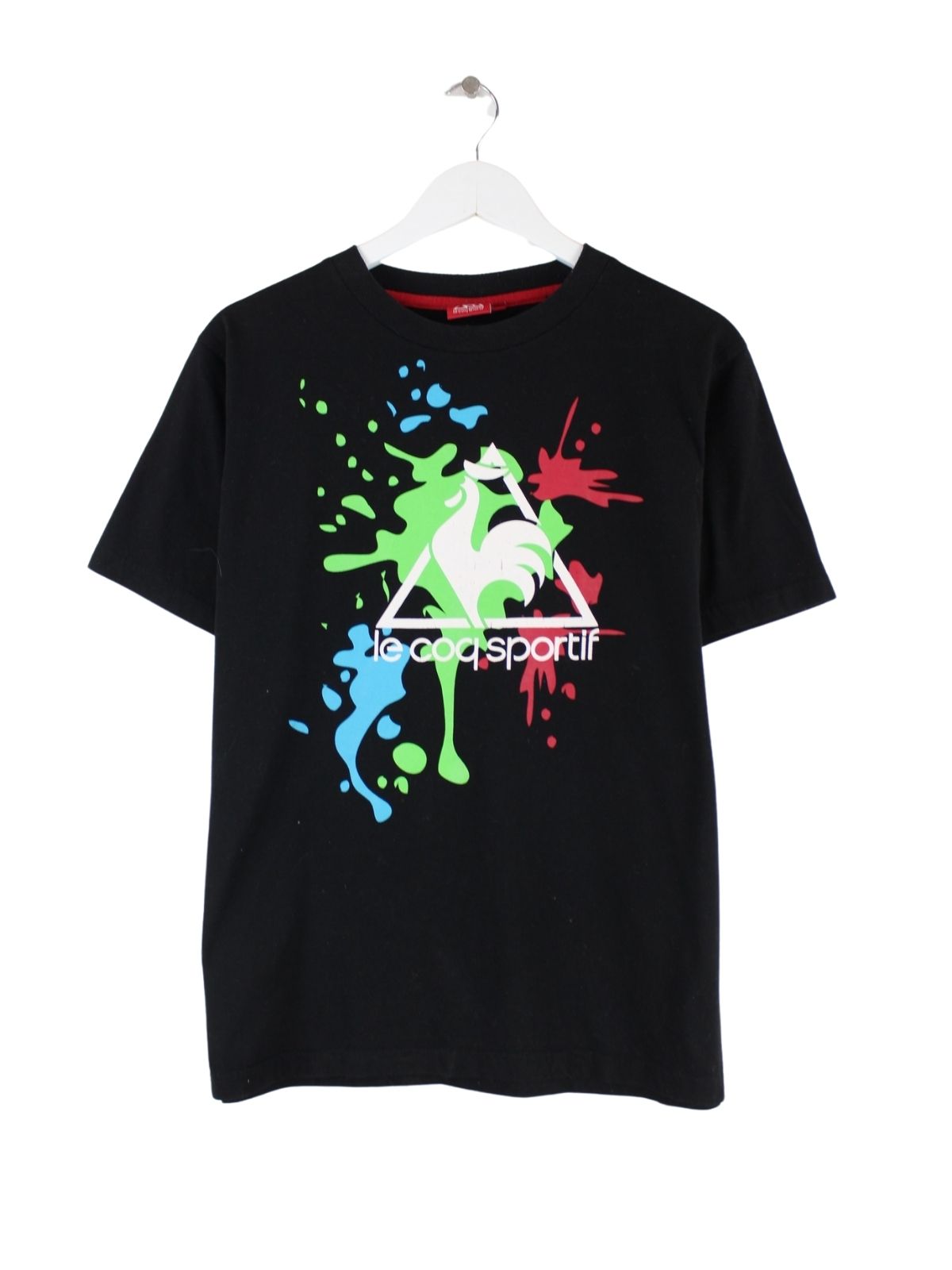 T-Shirt aus dem Hause Le Coq Sportif in Größe L. Es ist aus Baumwolle und in Schwarz zu haben. Mit tollem Print.