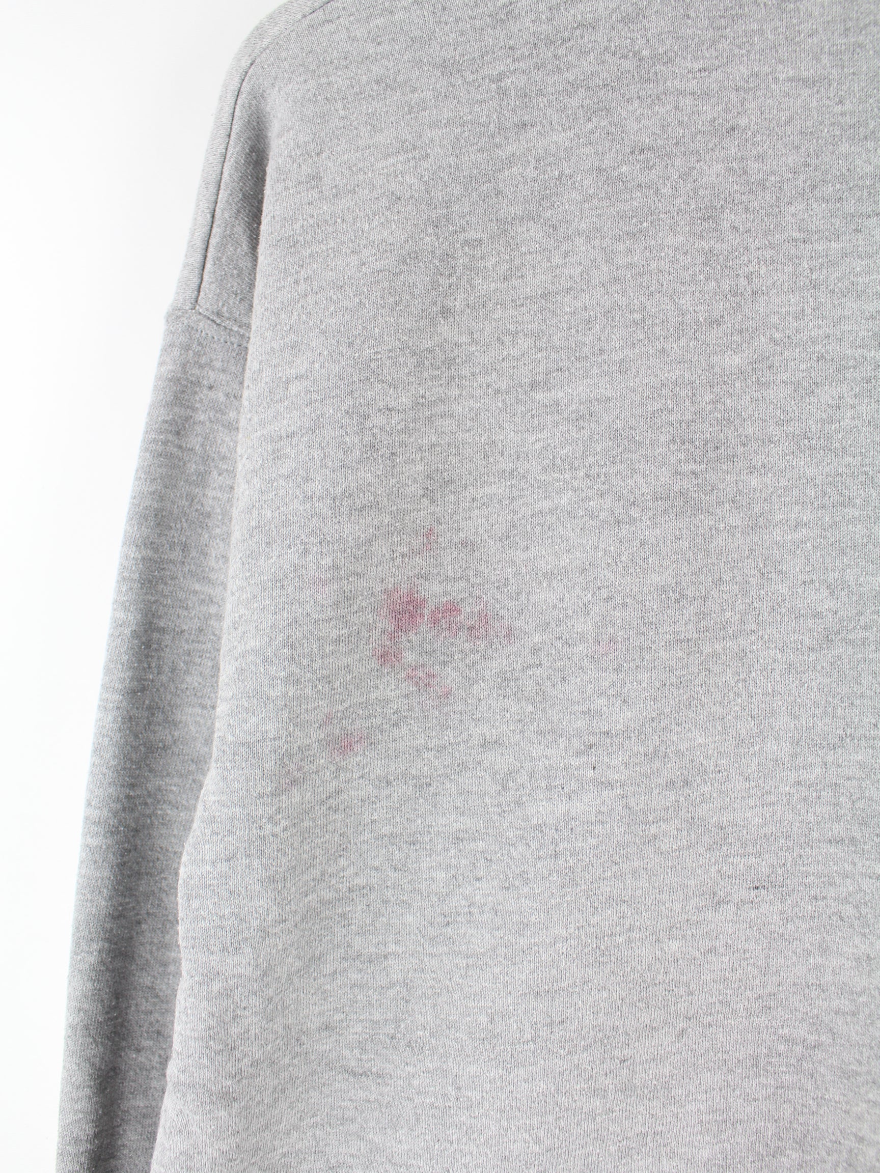 Grauer Sweater mit Stickereien vom Label Lee aus den 90'ern in Größe L. Er ist aus einer Baumwollmischung gemacht und in gutem Zustand im Bestand.