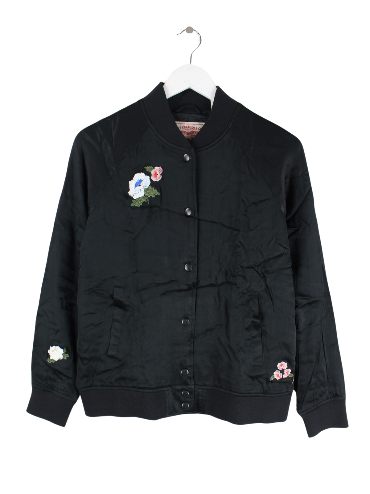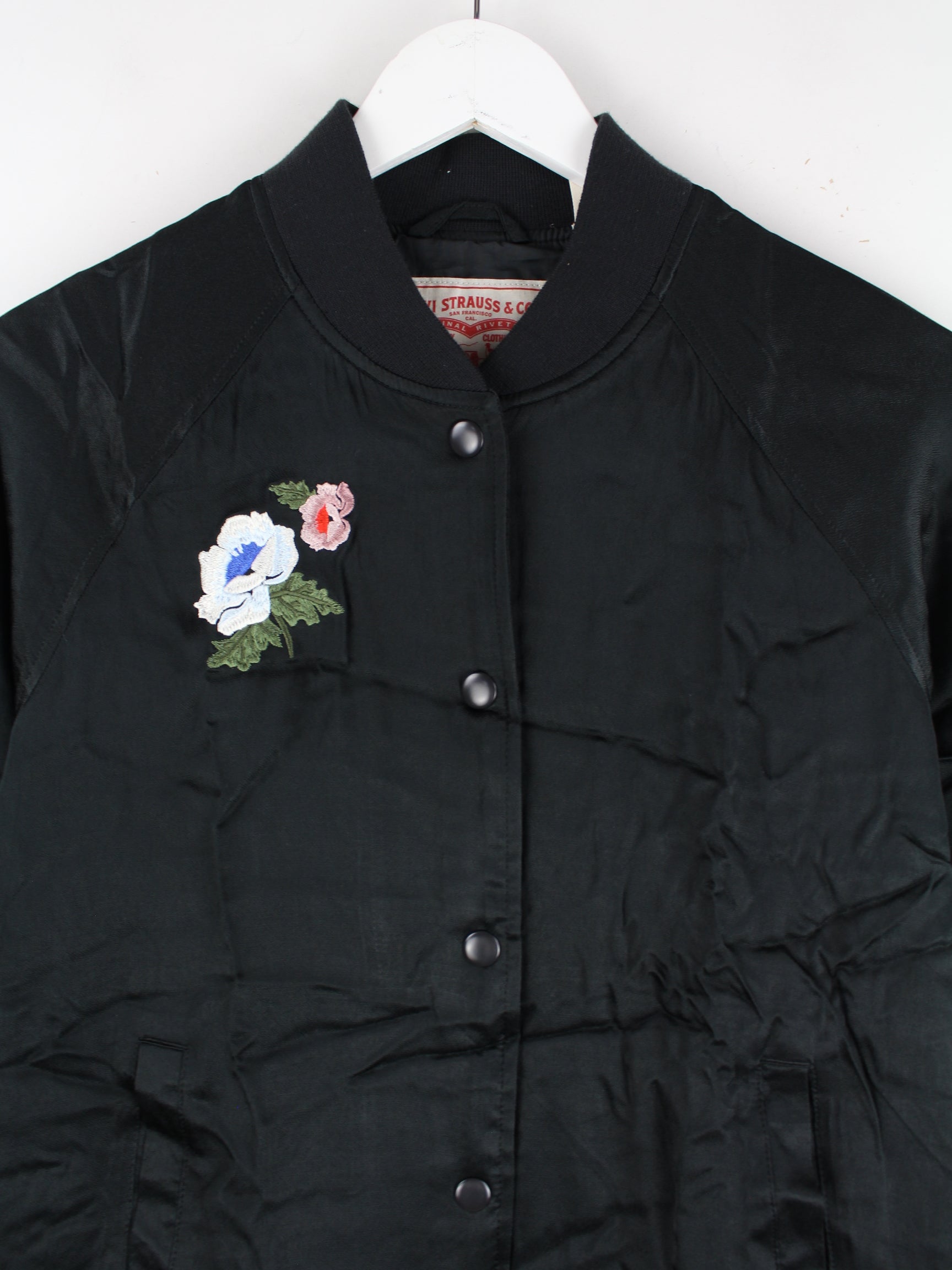 Schwarze Leichte Jacke mit gestickten Motiven vom Label Levi's in Größe S. Sie ist aus Synthetik hergestellt und in sehr gutem Zustand zu bekommen.