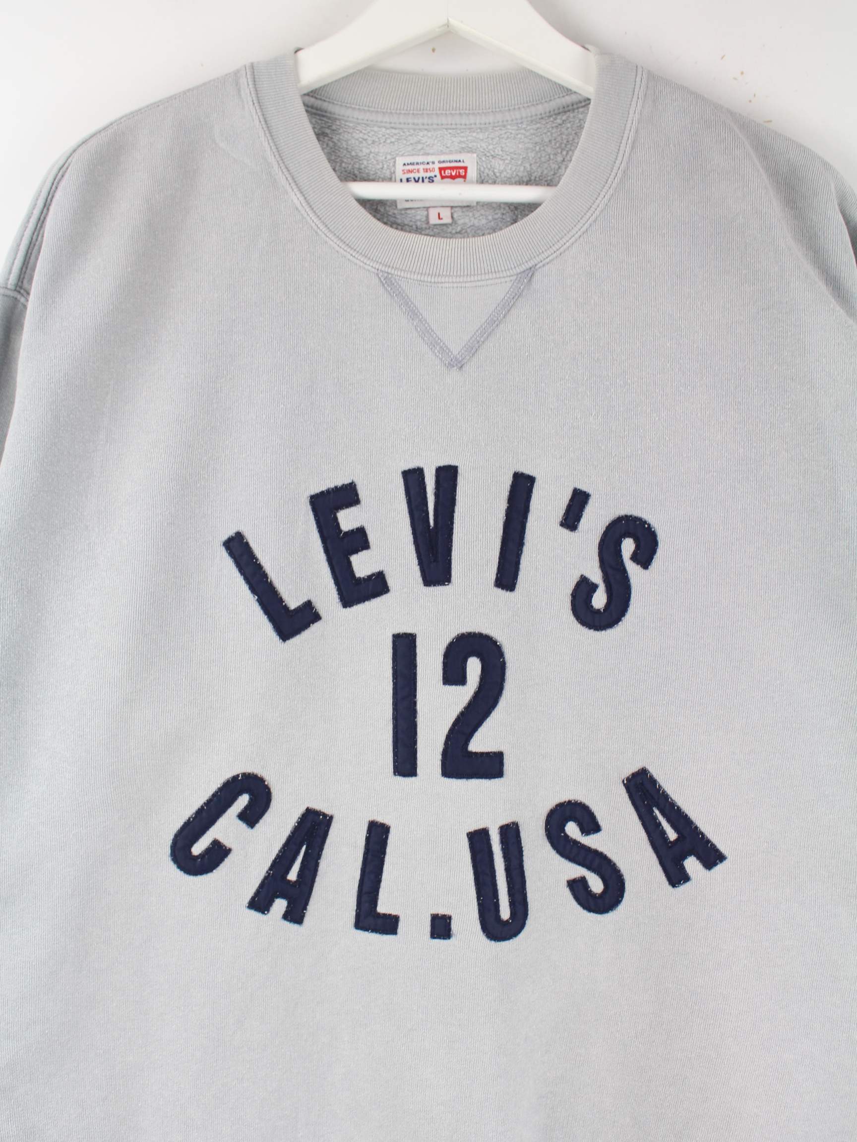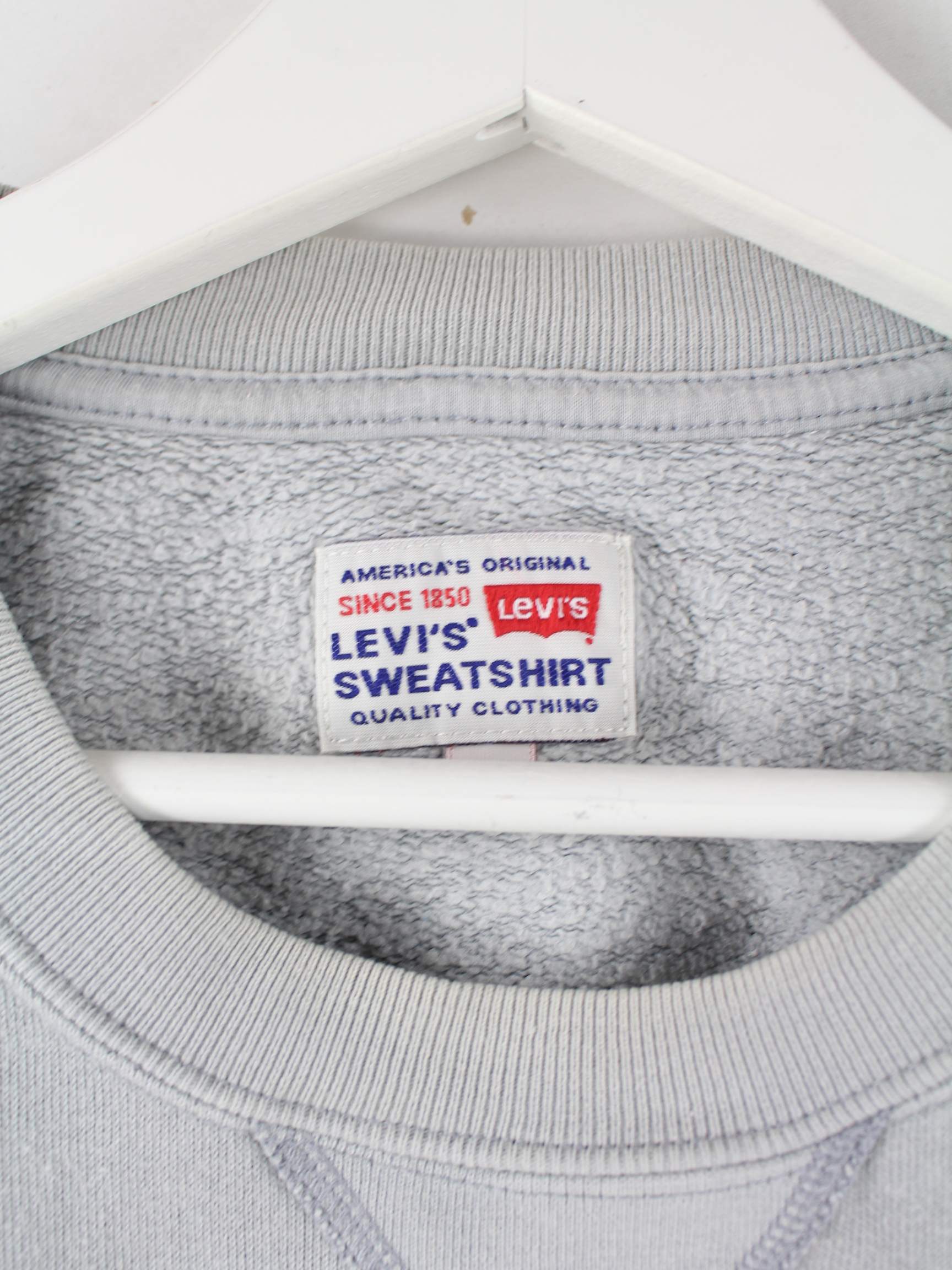 Blauer Sweater mit gesticktem Logo vom Label Levi's in Größe L. Er ist aus einer Baumwollmischung produziert und in sehr gutem Zustand in Stock.