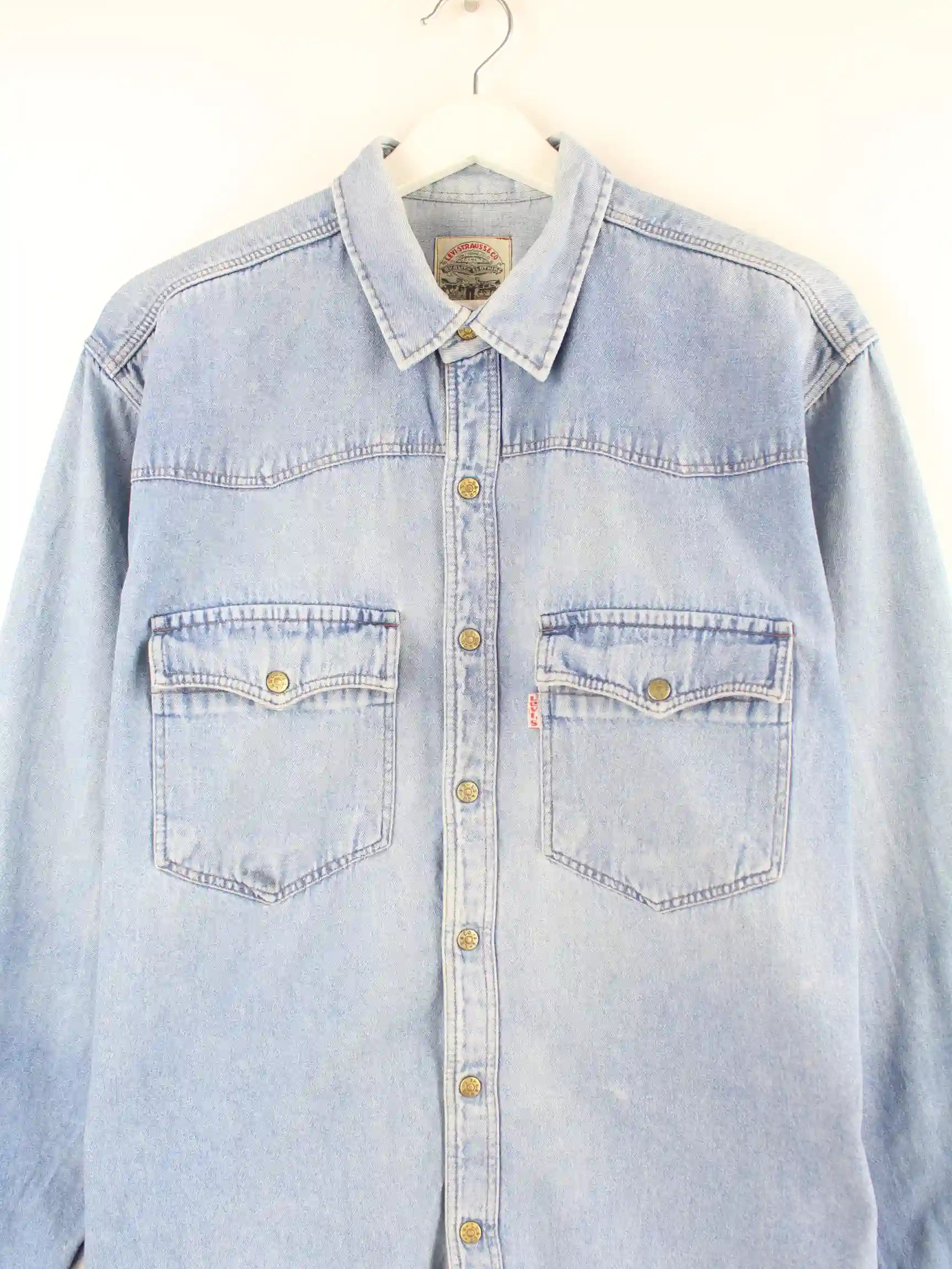 Blaues Freizeit Hemd der Brand Levi's aus den 90'ern in Größe L. Es ist aus Baumwolle und in sehr gutem Zustand im Angebot.