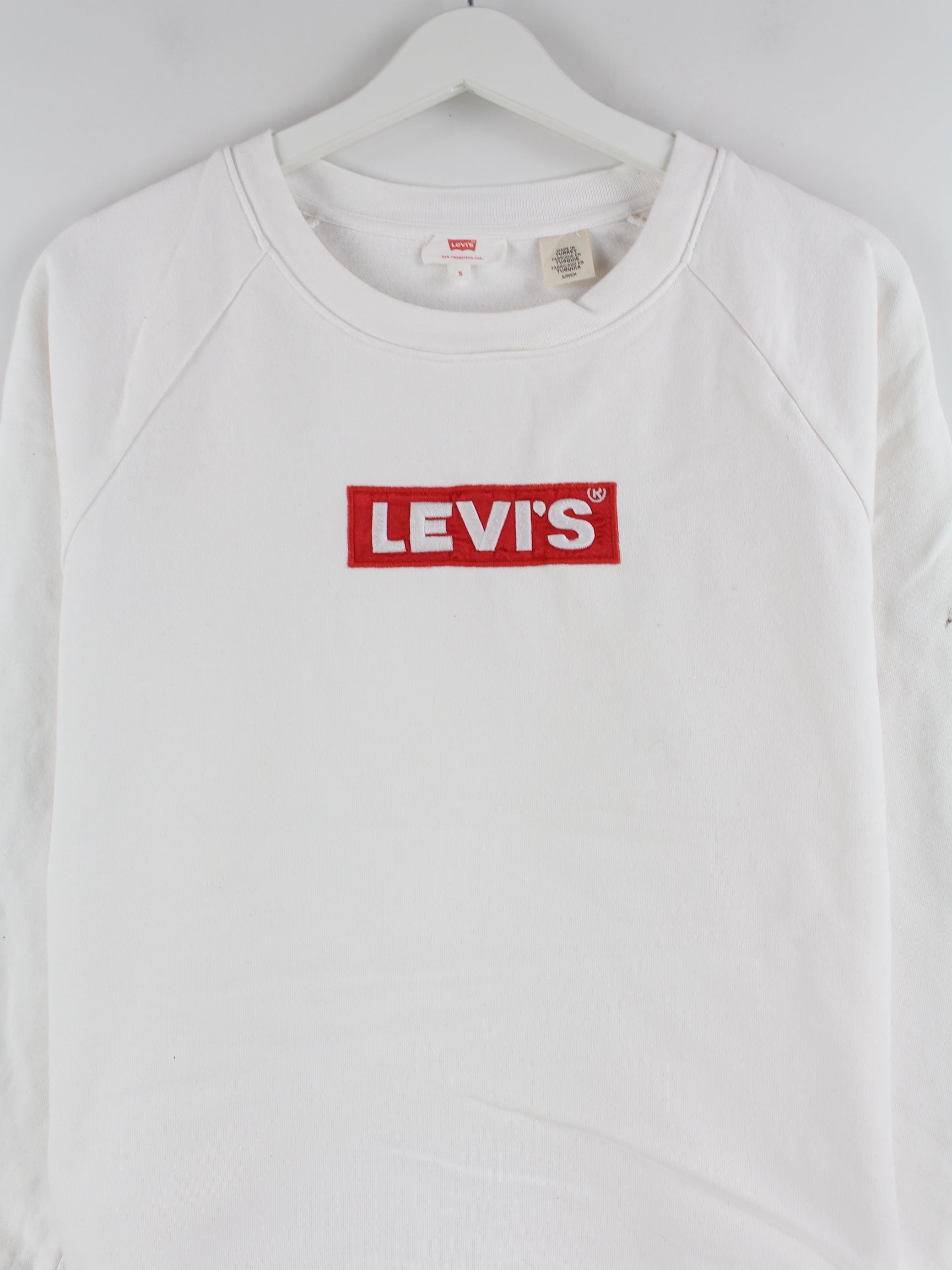 White sweater from Levi's in size S. It is made from a cotton blend and is in stock in good condition.