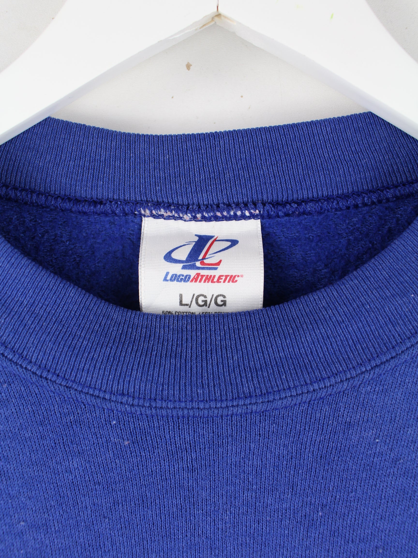 Sweater der Brand Logo 7 in Größe L aus den 90'ern. Er ist aus einer Baumwollmischung und in Blau zu haben. Mit chiquem Clippers Print.