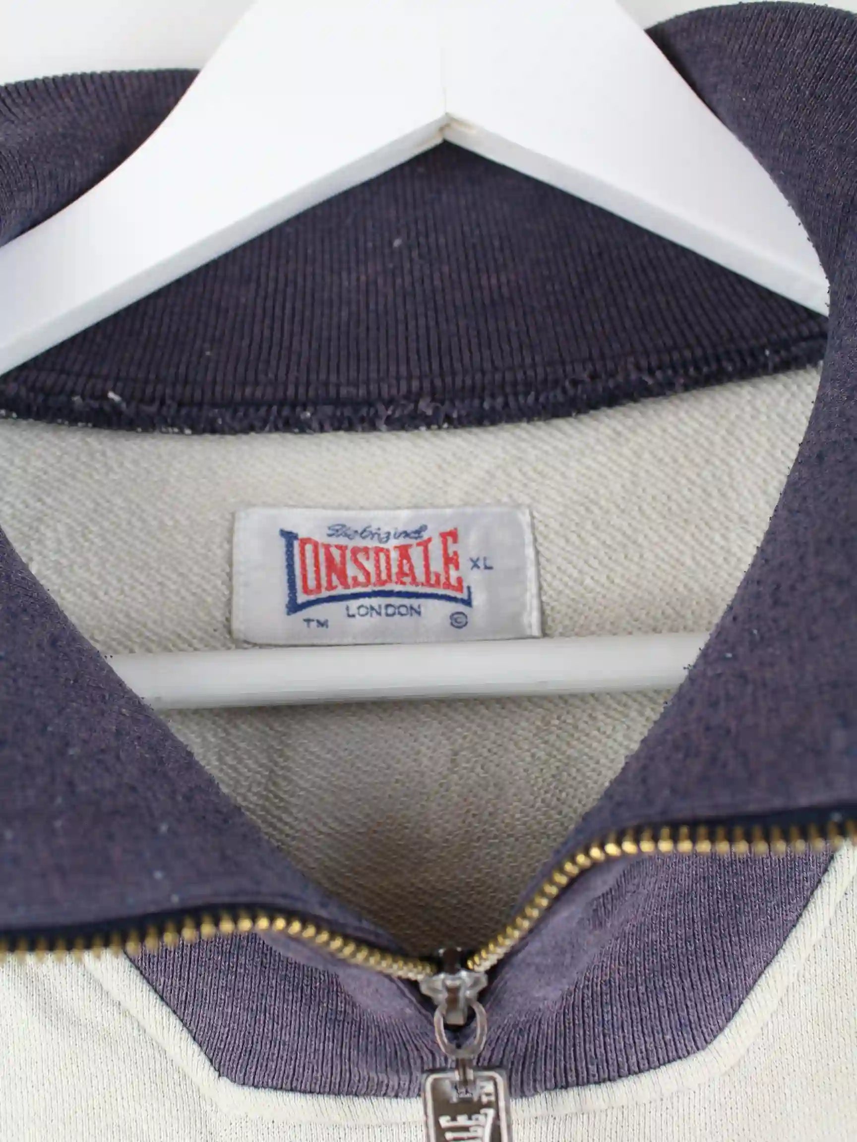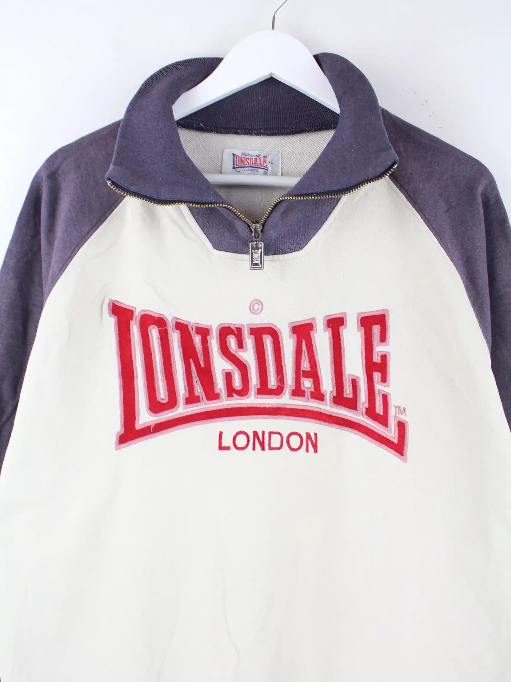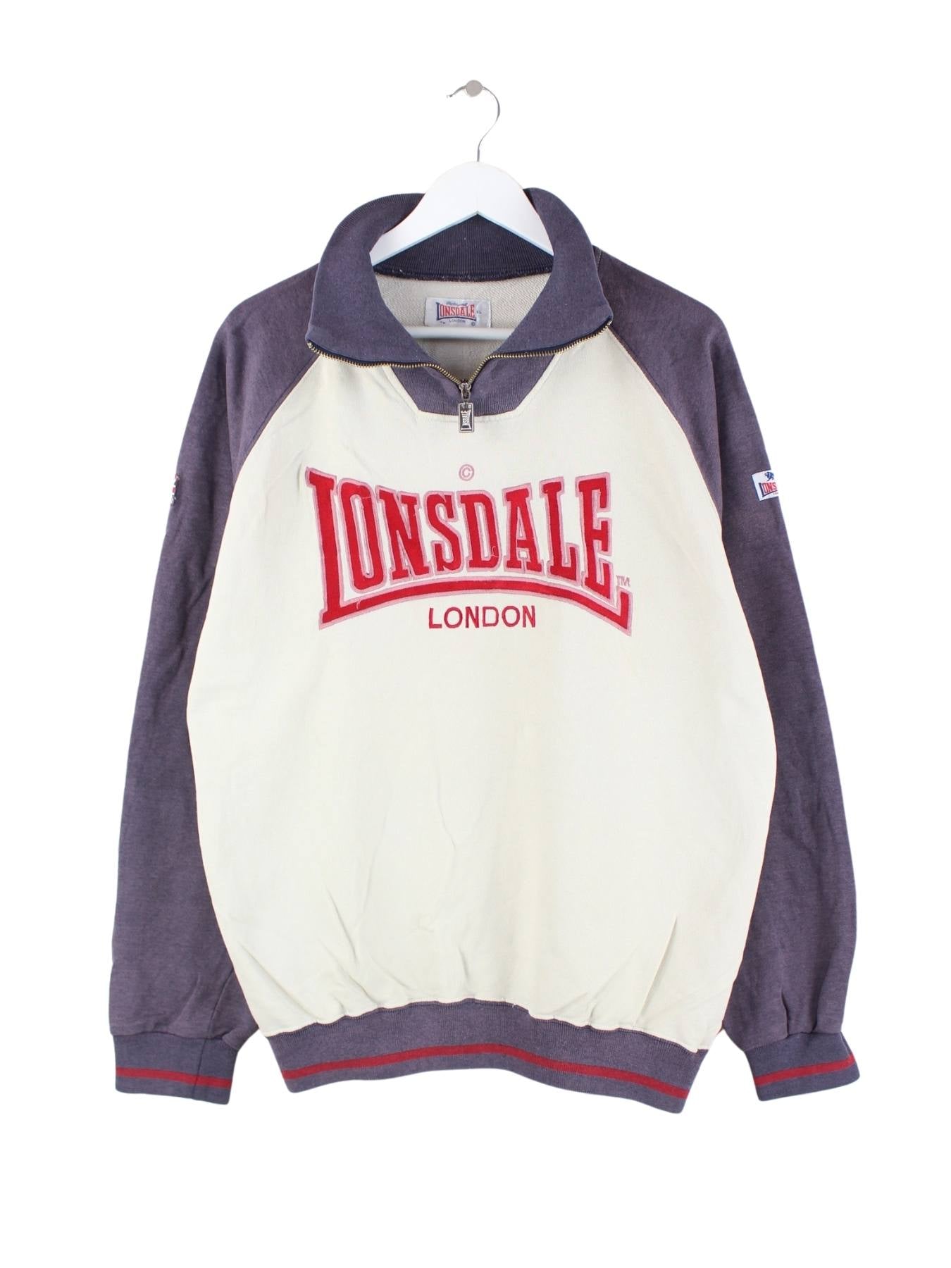 Lonsdale 90s Vintage Embroidered Half Zip Sweater Beige XL