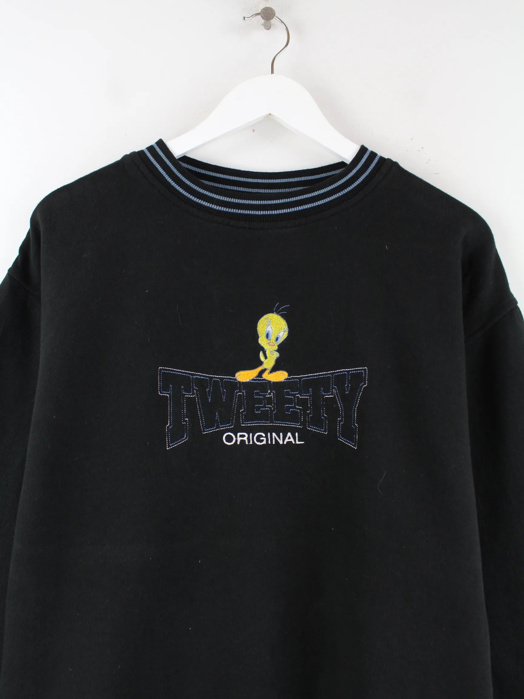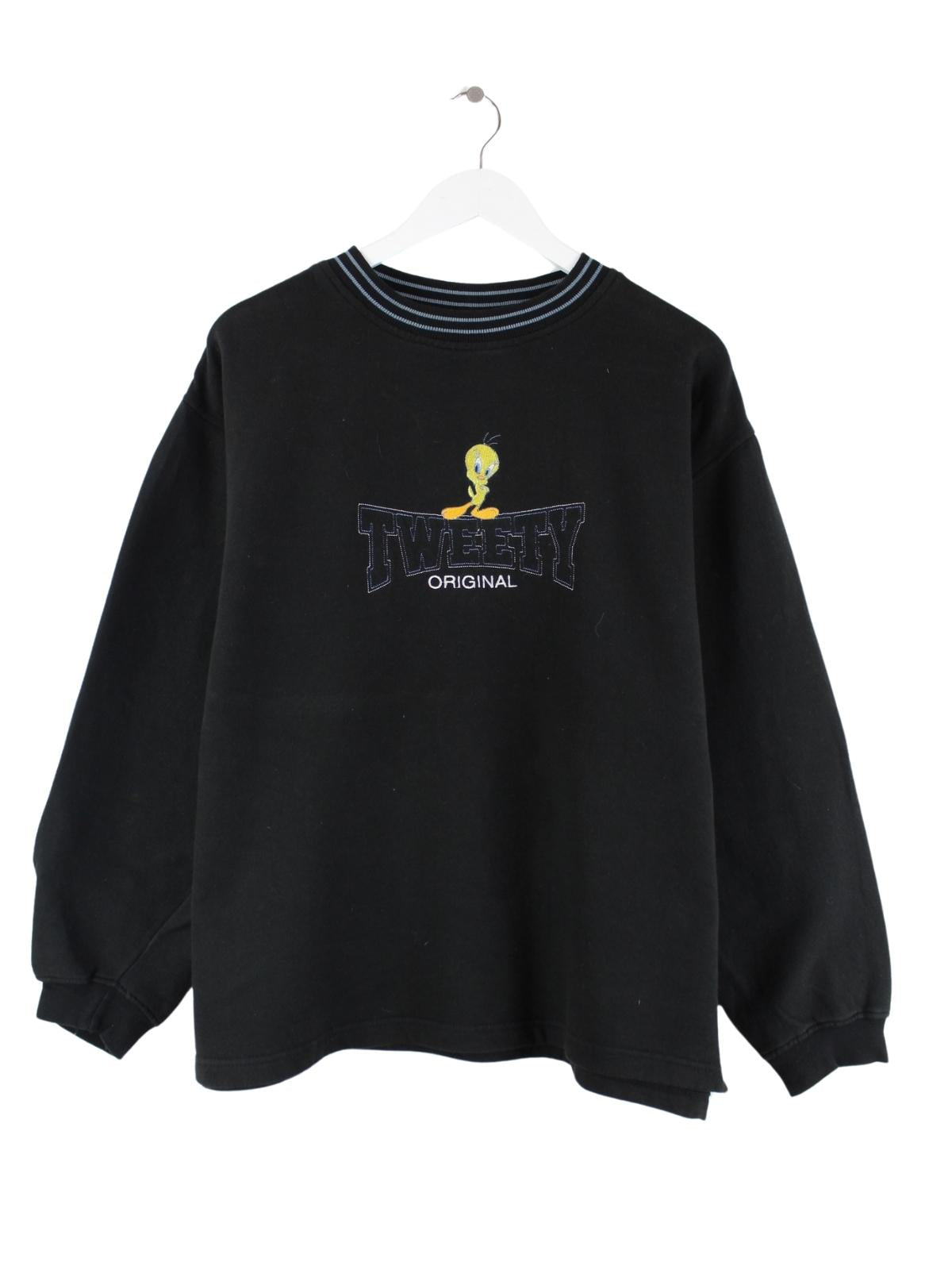 Looney Tunes 90s Vintage Embroidered Tweety Sweater Schwarz XL