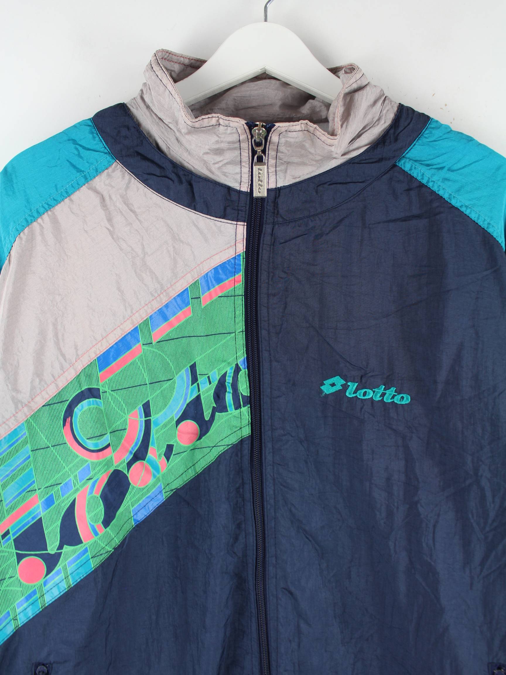 Blaue Trainingsjacke vom Label Lotto aus den 80'ern in Größe M. Sie ist aus Synthetik gefertigt. Den Zustand würden wir als 'In Ordnung' bezeichnen (vergl. Bilder).
