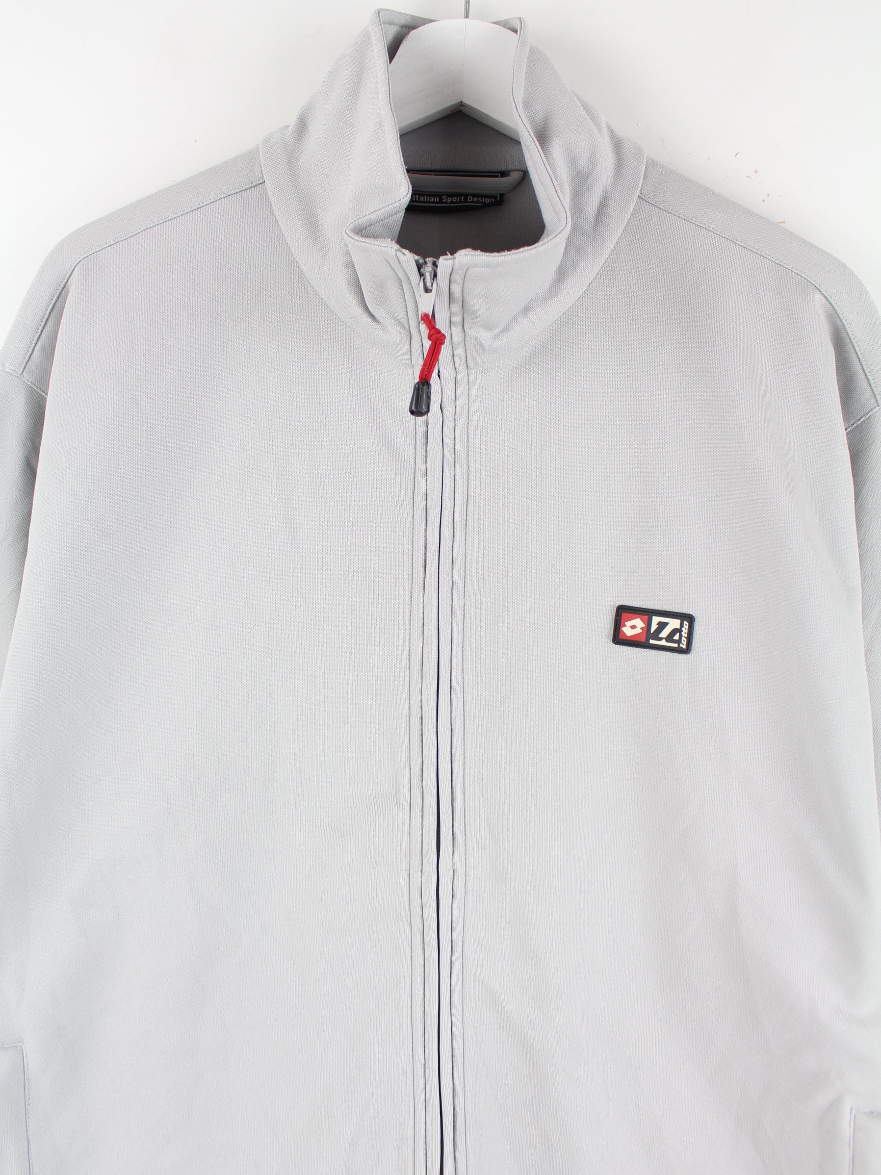 Graue Trainingsjacke des Labels Lotto aus den 90'ern in Größe L. Sie ist aus Synthetik gemacht und in sehr gutem Zustand im Bestand.