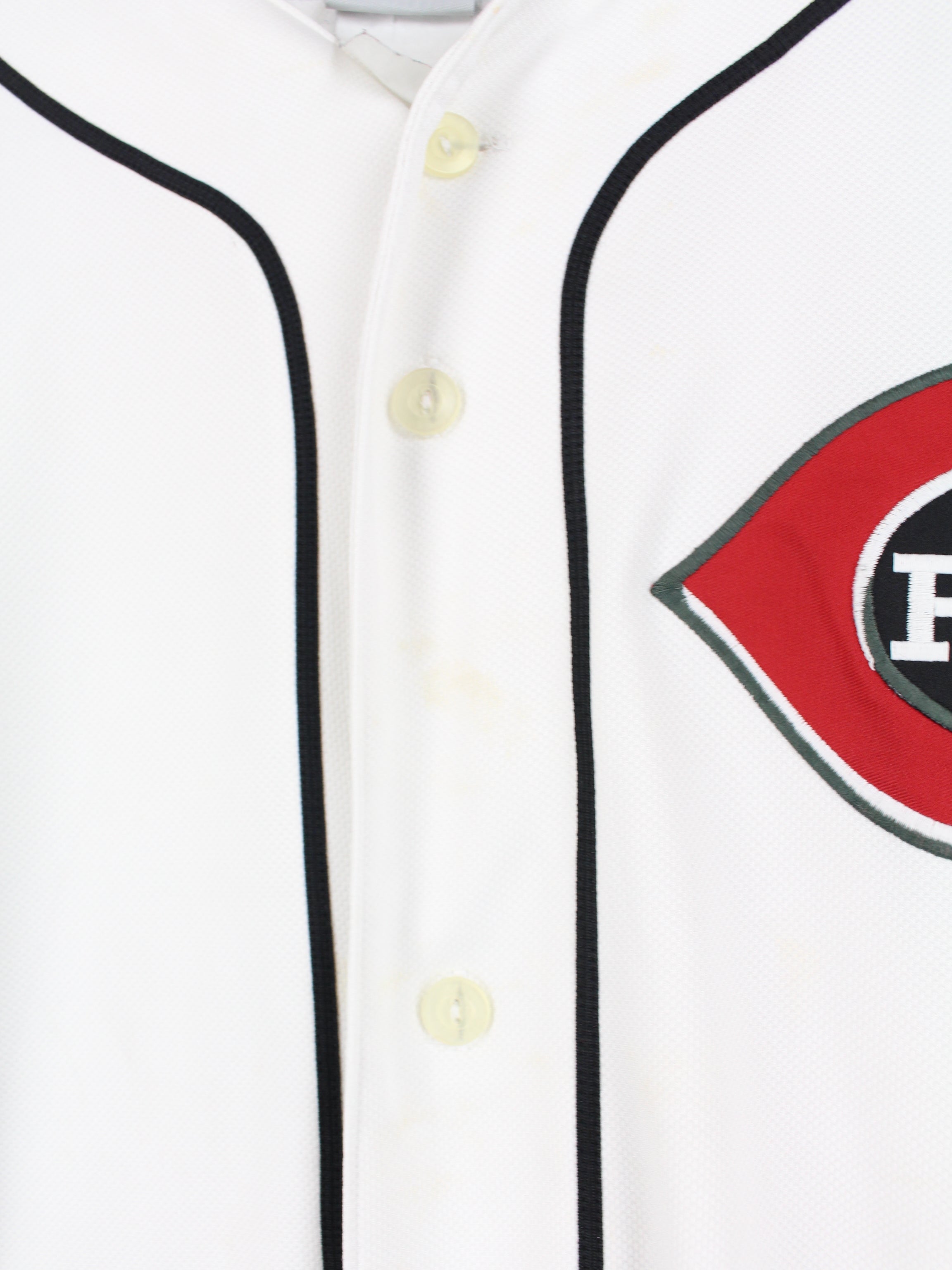 White MLB Cincinnati Reds Baseball Jersey.