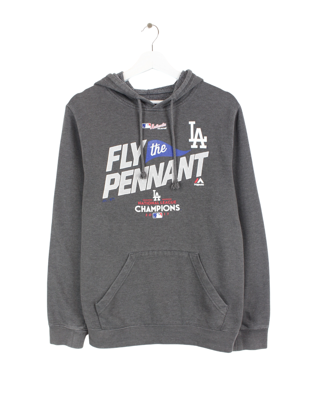 Gray LA Dodgers FLY THE PENNANT MLB Hoodie of the Majestic brand.