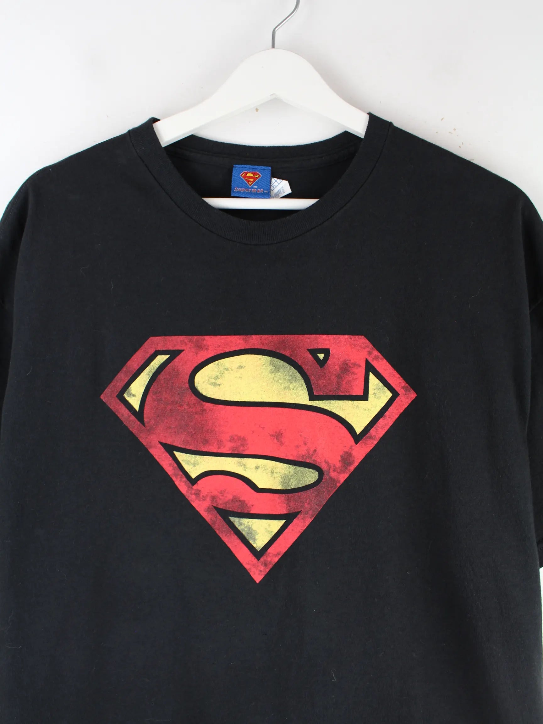 T-Shirt des Labels Marvel in Größe XL. Es ist aus Baumwolle produziert und in Schwarz in Stock. Mit schönem Superman Print.