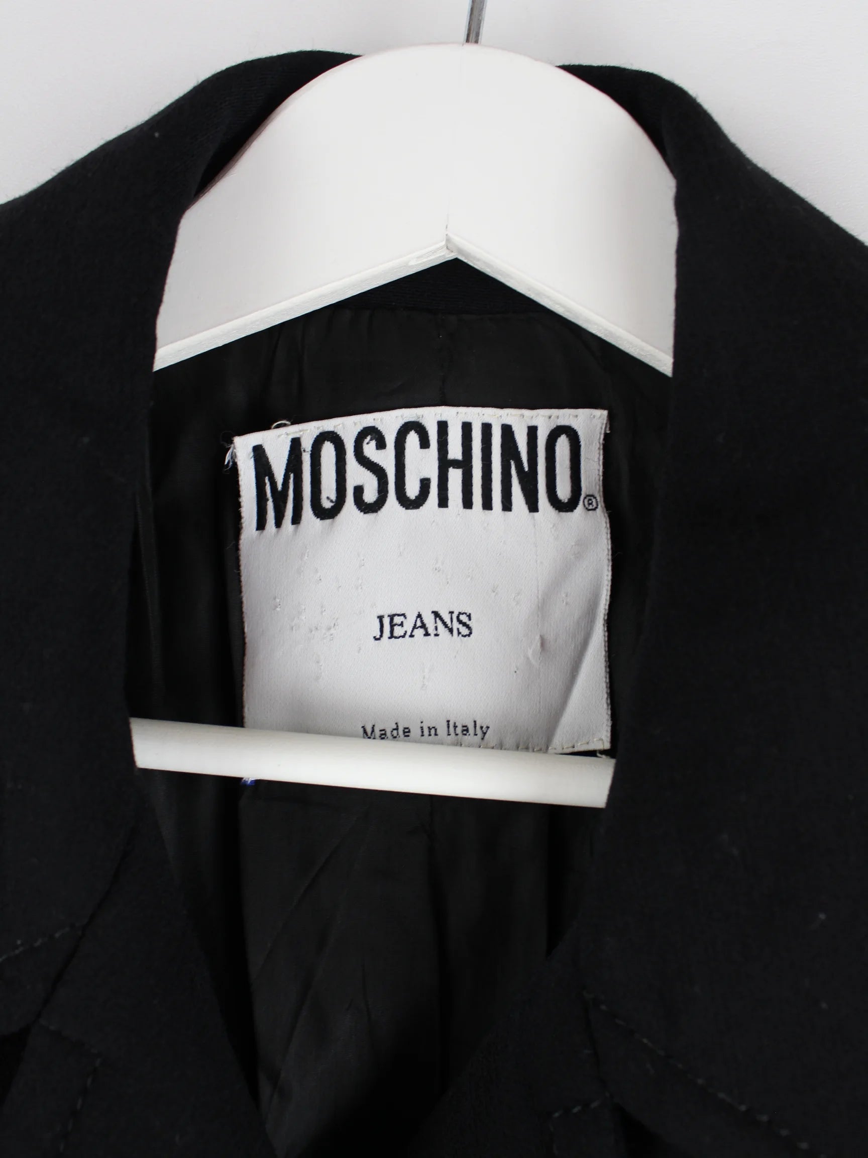 Schwarzer Mantel vom Brand Moschino in Größe M. Er ist aus einer Baumwollmischung produziert und in sehr gutem Zustand auf Lager.