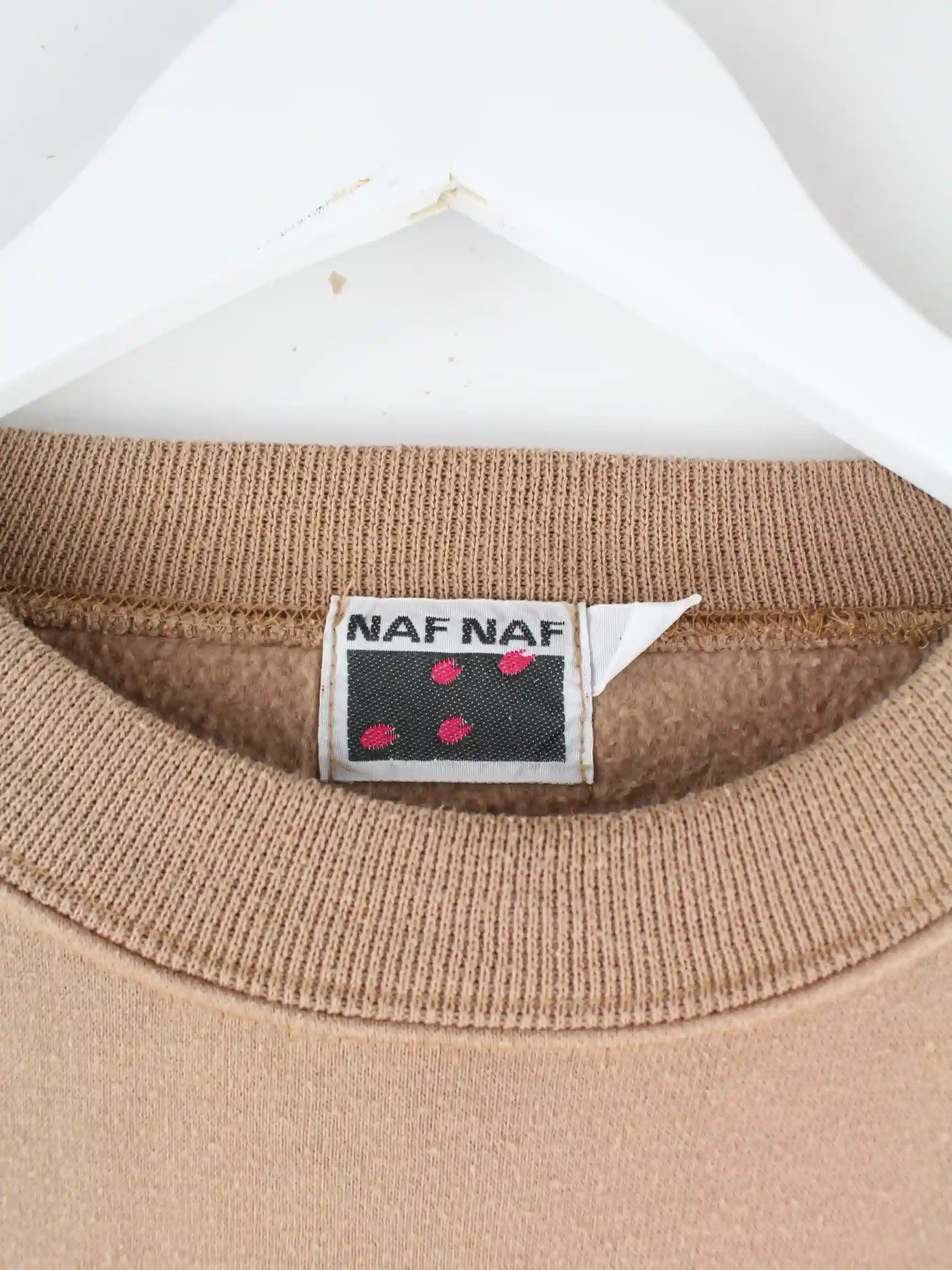 Brauner Sweater mit Stick von Naf Naf aus den 90'ern in Größe XS. Er ist aus einer Baumwollmischung hergestellt und in sehr gutem Zustand zu bekommen.