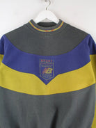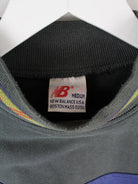 Mehrfarbiger Sweater mit gestickten Motiven vom Label New Balance aus den 80'ern in Größe M. Er ist aus einer Baumwollmischung angefertigt und in gutem Zustand zu haben.