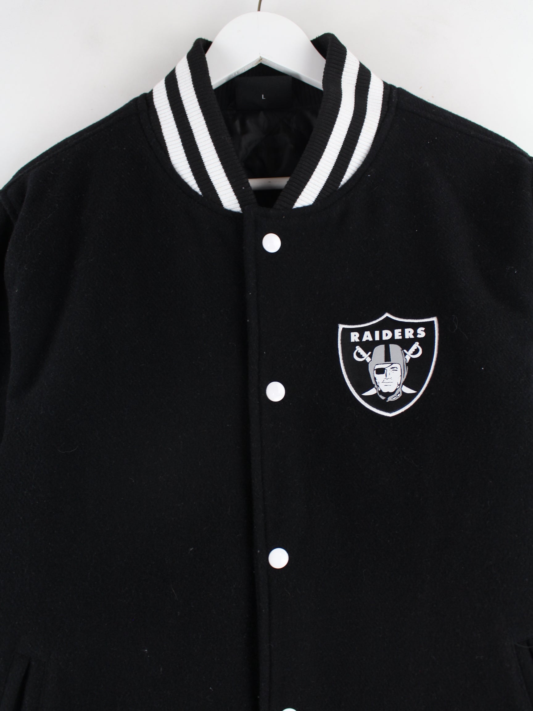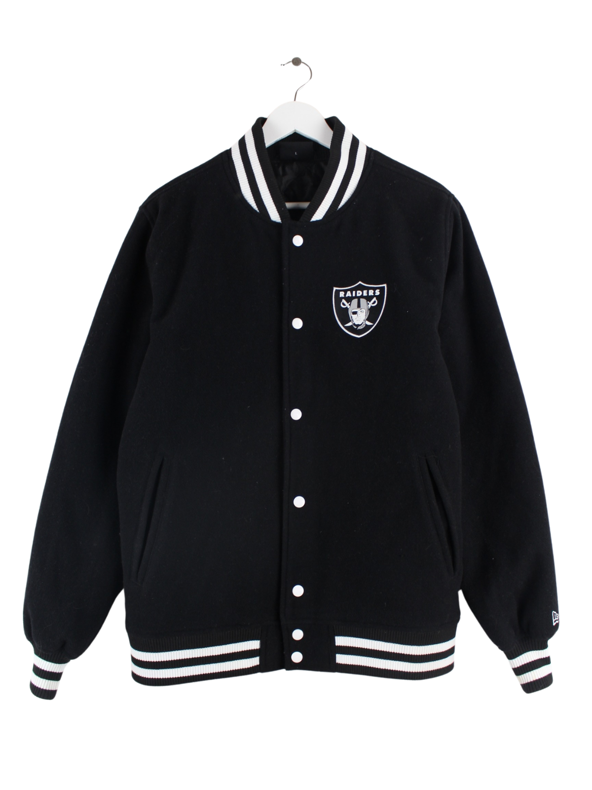 New Era jacket with embroidered motifs in size L. It is made from a cotton blend and is available in black.