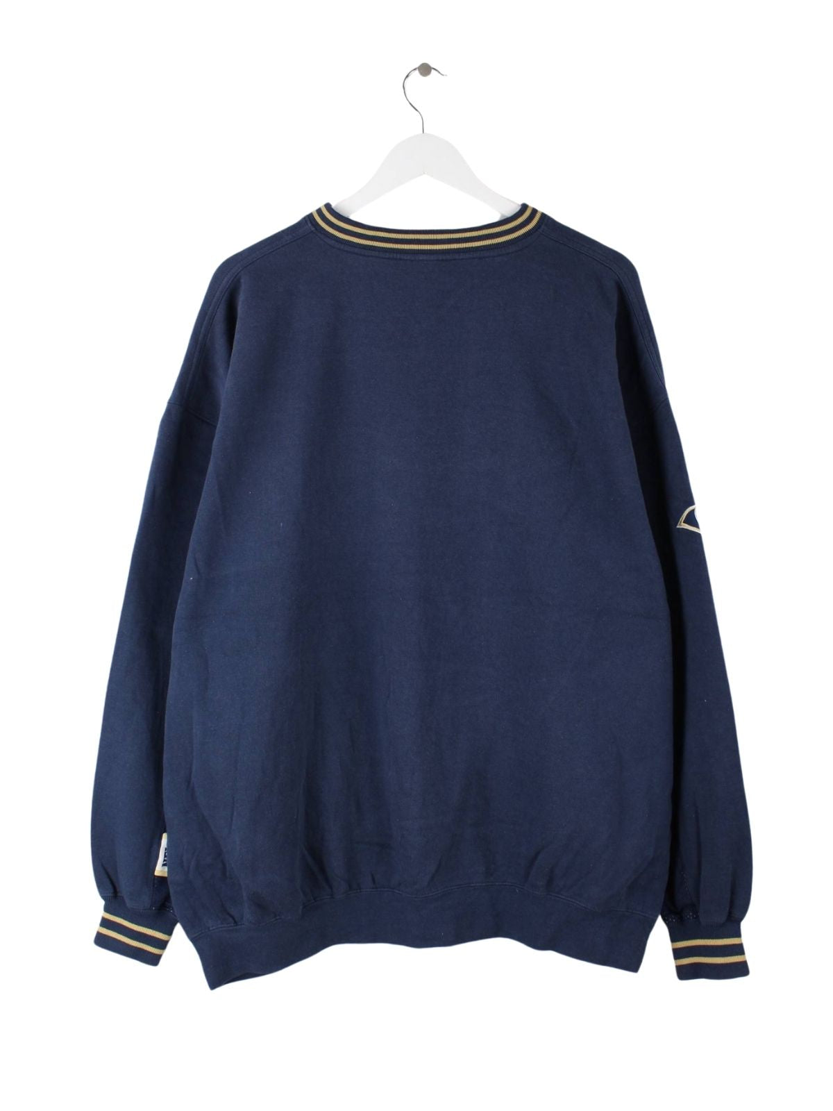 Blauer Sweater mit gestickten Motiven aus dem Hause NFL in Größe XXL. Er ist aus einer Baumwollmischung produziert. Den Zustand würden wir als 'In Ordnung' bezeichnen (vergl. Bilder).