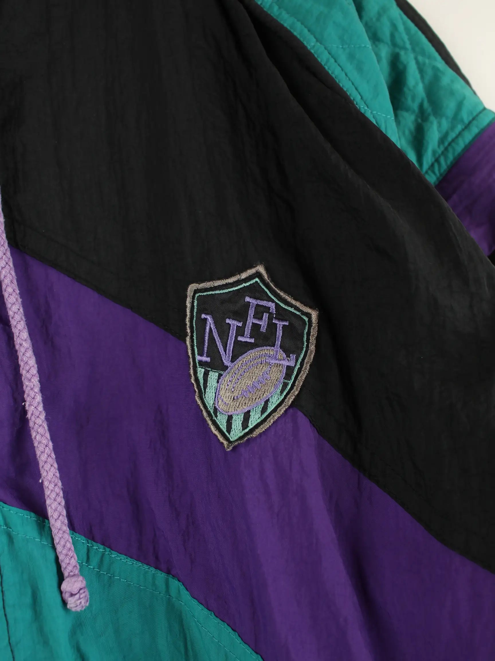 Leichte Jacke aus dem Hause NFL in Größe M aus den 80'ern. Sie ist aus Synthetik und in Schwarz in Stock.