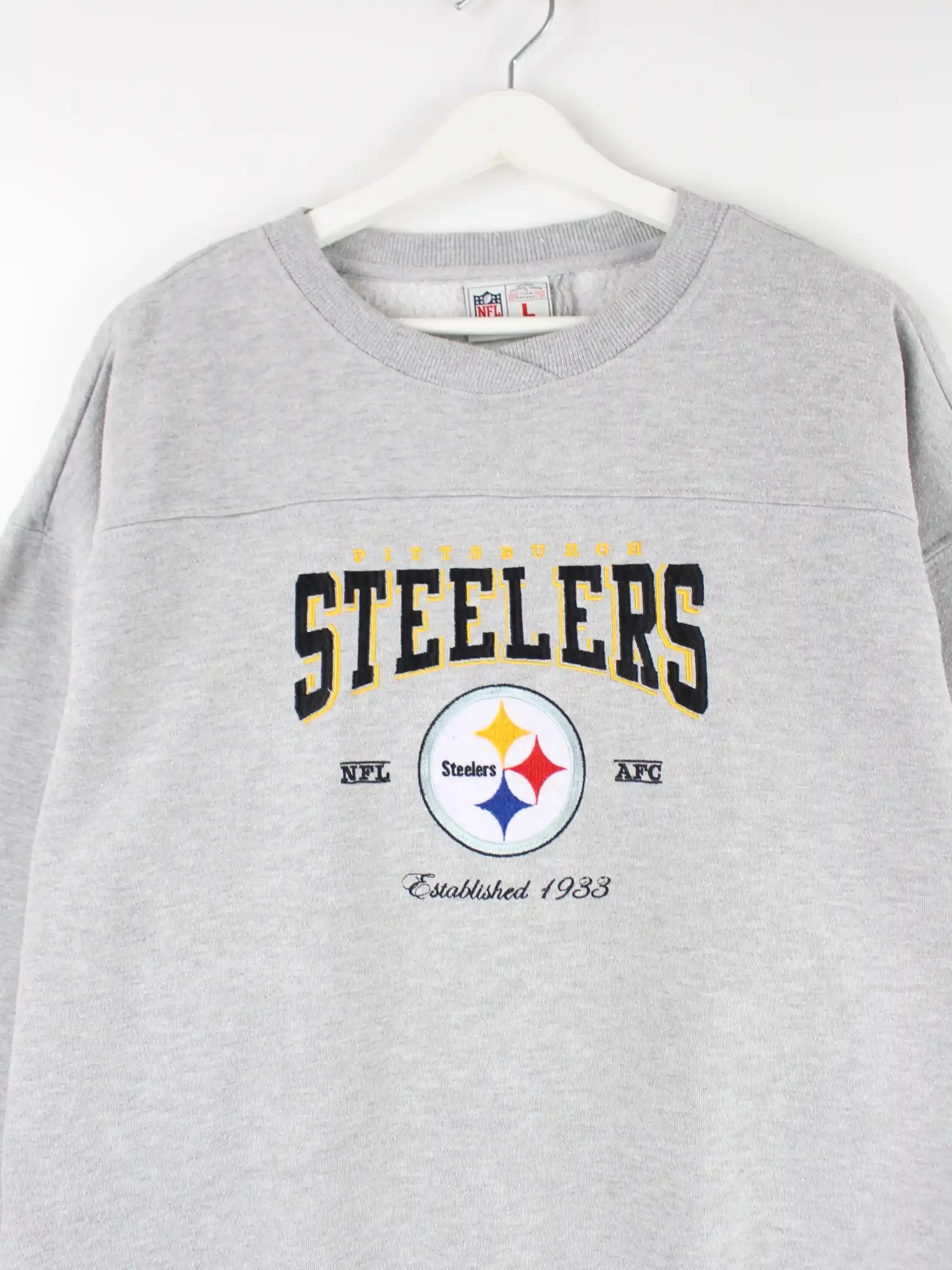 Grauer Sweater der Brand NFL in Größe L. Er ist aus einer Baumwollmischung gemacht und in sehr gutem Zustand zu haben.